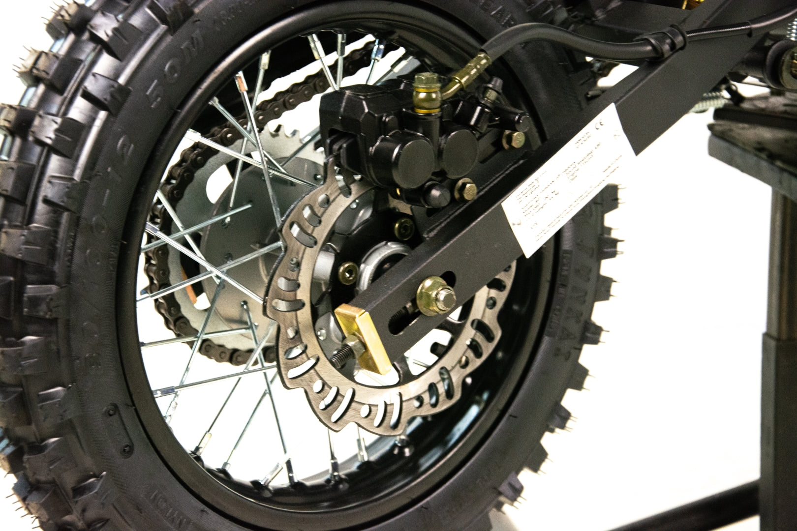 Cross zestawiony jest na kołach w rozmiarze 14 cali z przodu oraz 12 cali z tyłu. Koła zaopatrzone są w opony kostkowe, które zapewniają odpowiednią przyczepność podczas jazdy w terenie
