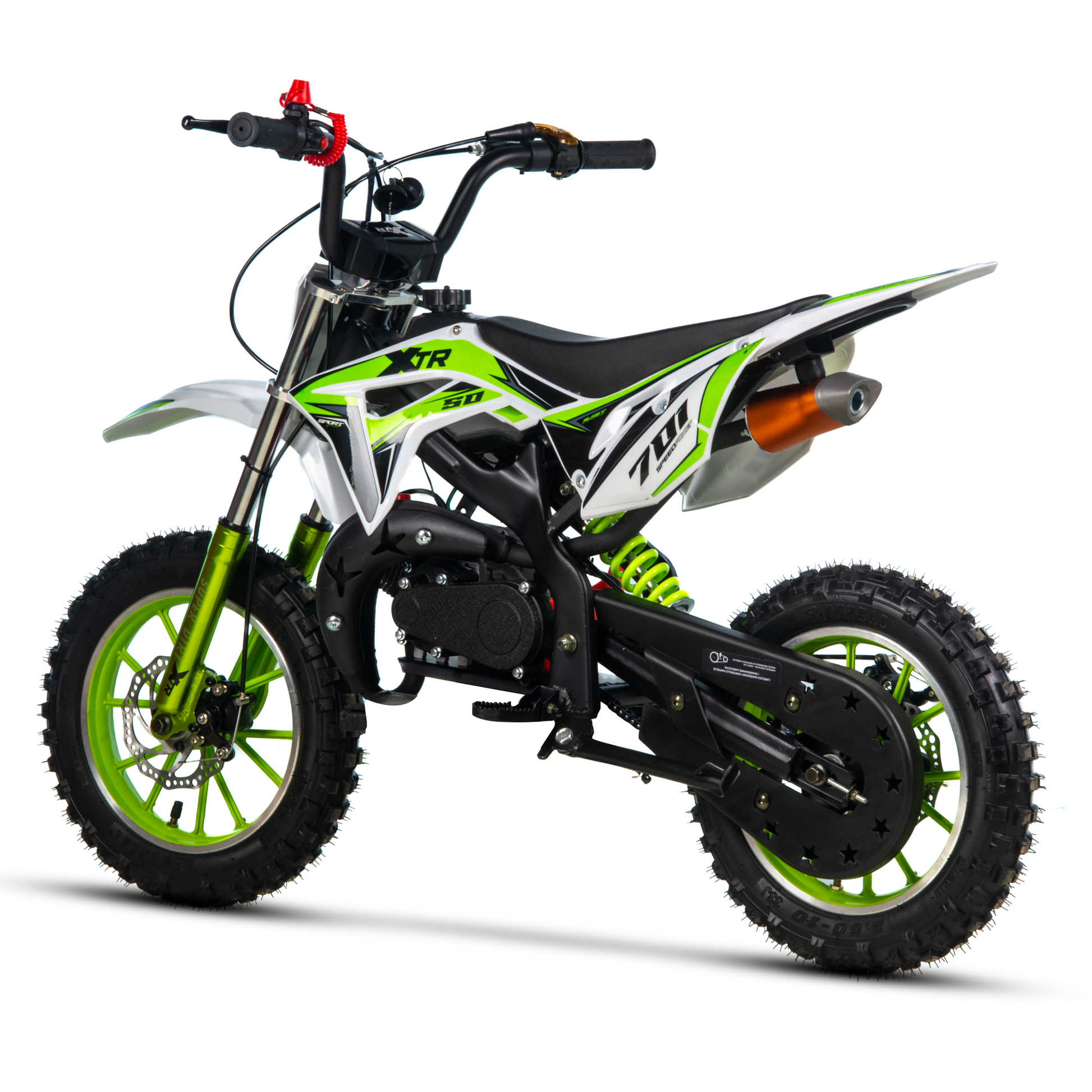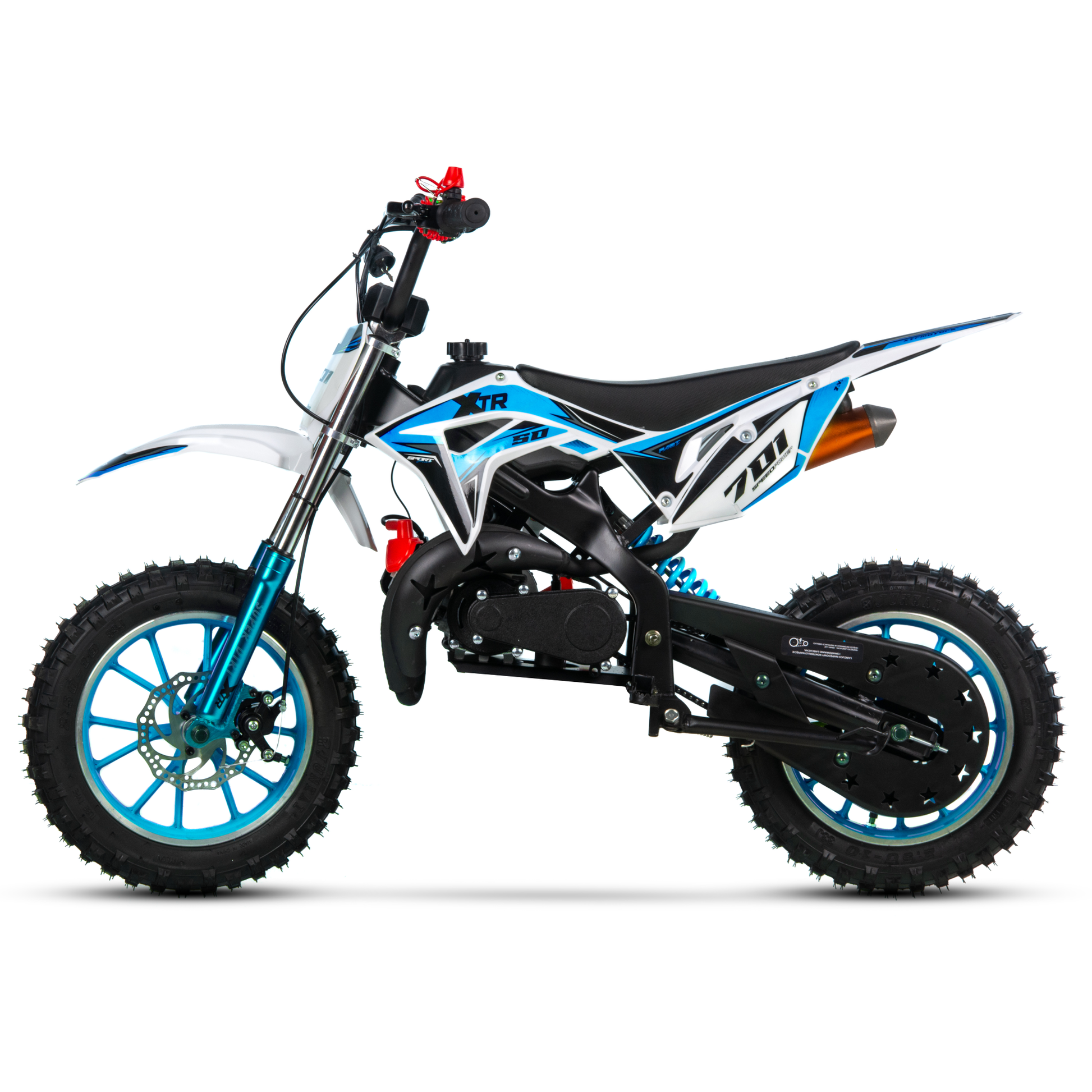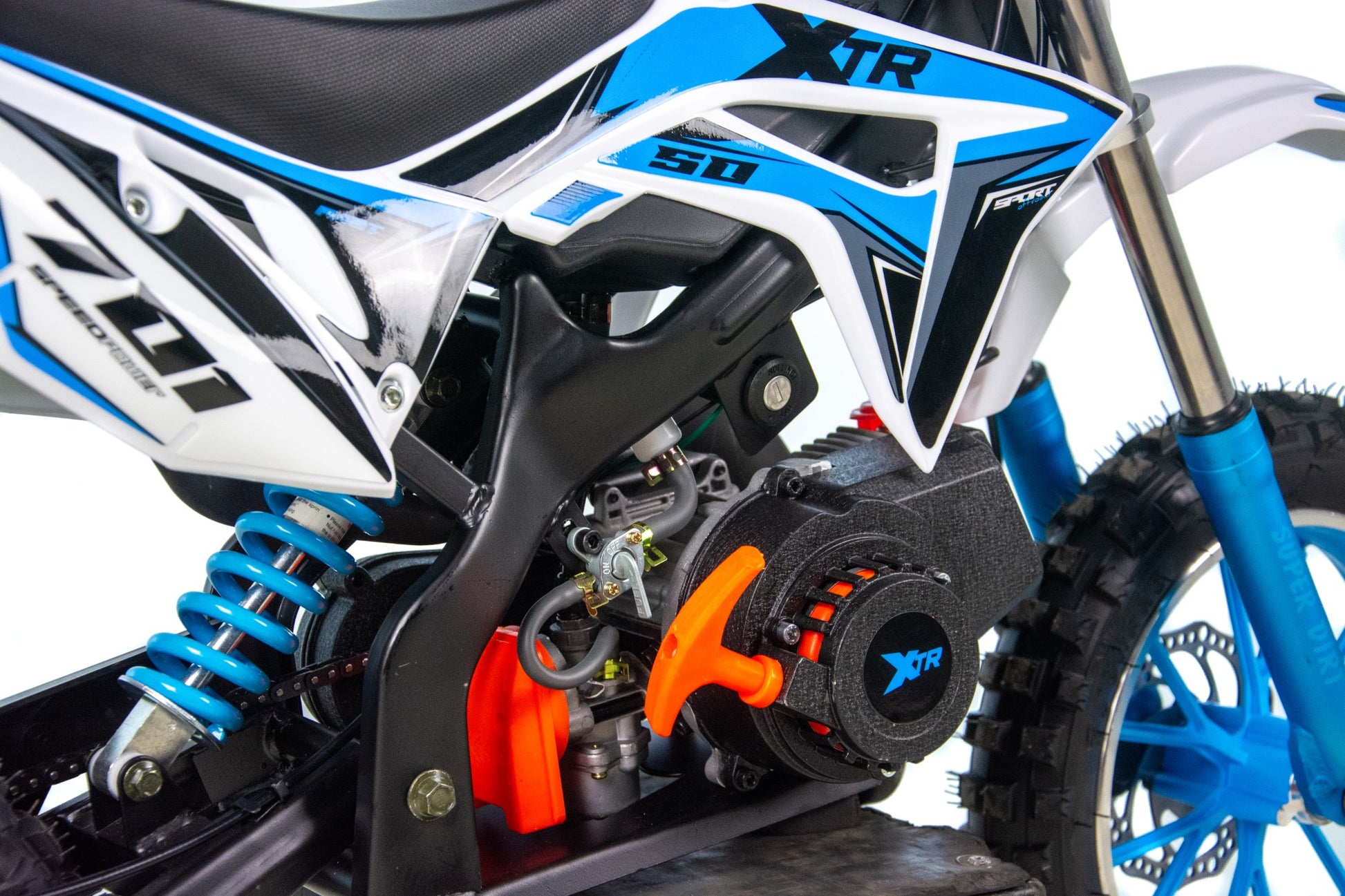 Mini cross XTR 701 to pojazd z silnikiem dwusuwowym o pojemności 50cm3. Przeznaczony jest dla najmłodszych miłośników jazdy w terenie. Odpowiedni dla dzieci od 6 roku życia (od ok. 125cm wzrostu). Dostępny jest w dwóch wersjach rozruchu: