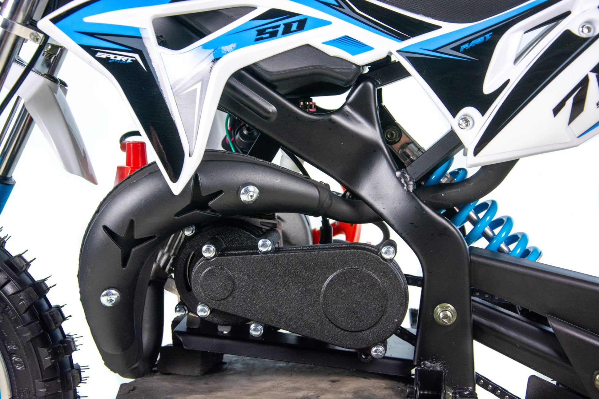 Jednostkę napędową w tym modelu stanowi dwusuwowy silnik jednocylindrowy o pojemności 50cm3. Zapewnia on optymalną moc dla początkujących i daje możliwość odpowiedniego zaznajomienia się z jazdą po wybojach