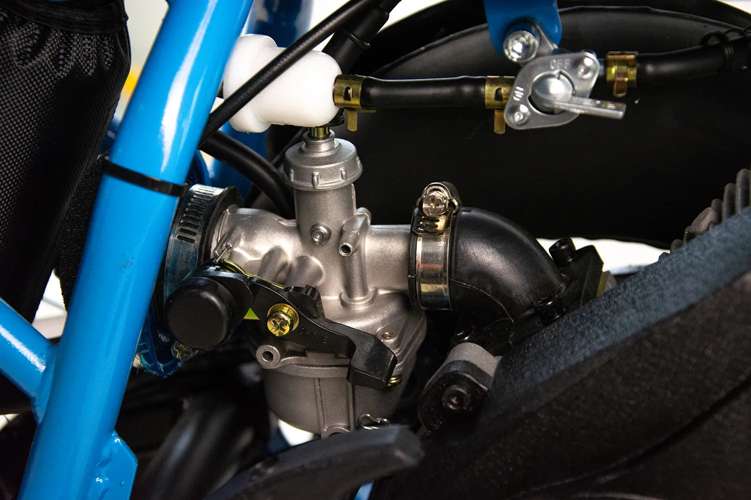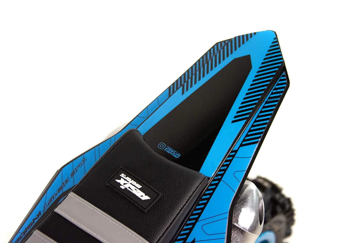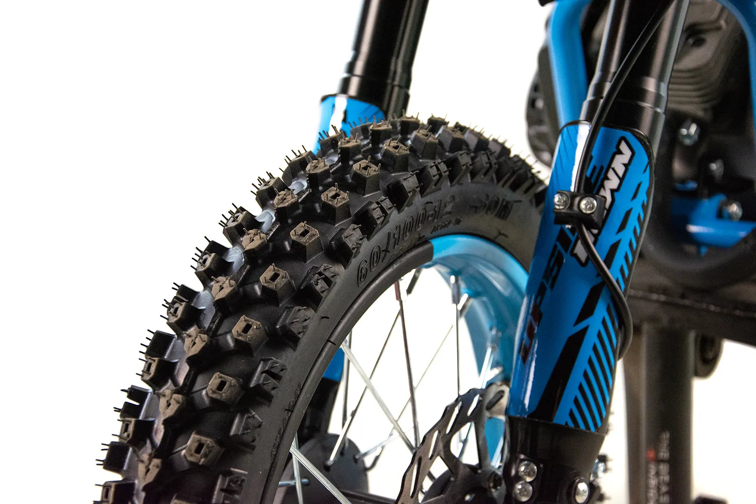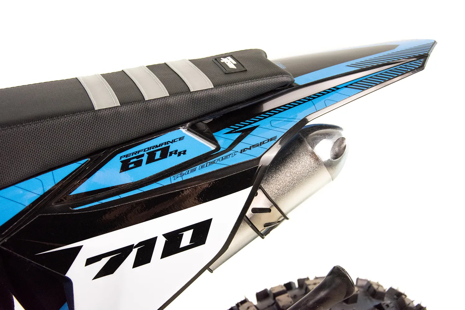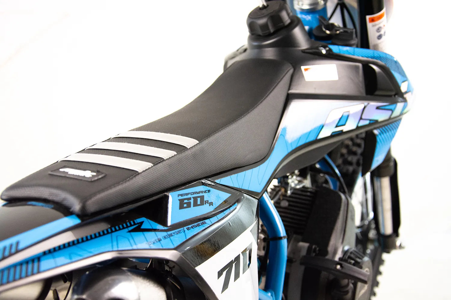 Mini cross ASIX 710 to pojazd z silnikiem dwusuwowym (2T) o pojemności 60cm3. Przeznaczony dla dzieci w wieku 6-10 lat. Cross zestawiony na kołach 12/10″, wyposażony w hamulce hydrauliczne, zrywkę bezpieczeństwa oraz amortyzatory olejowe