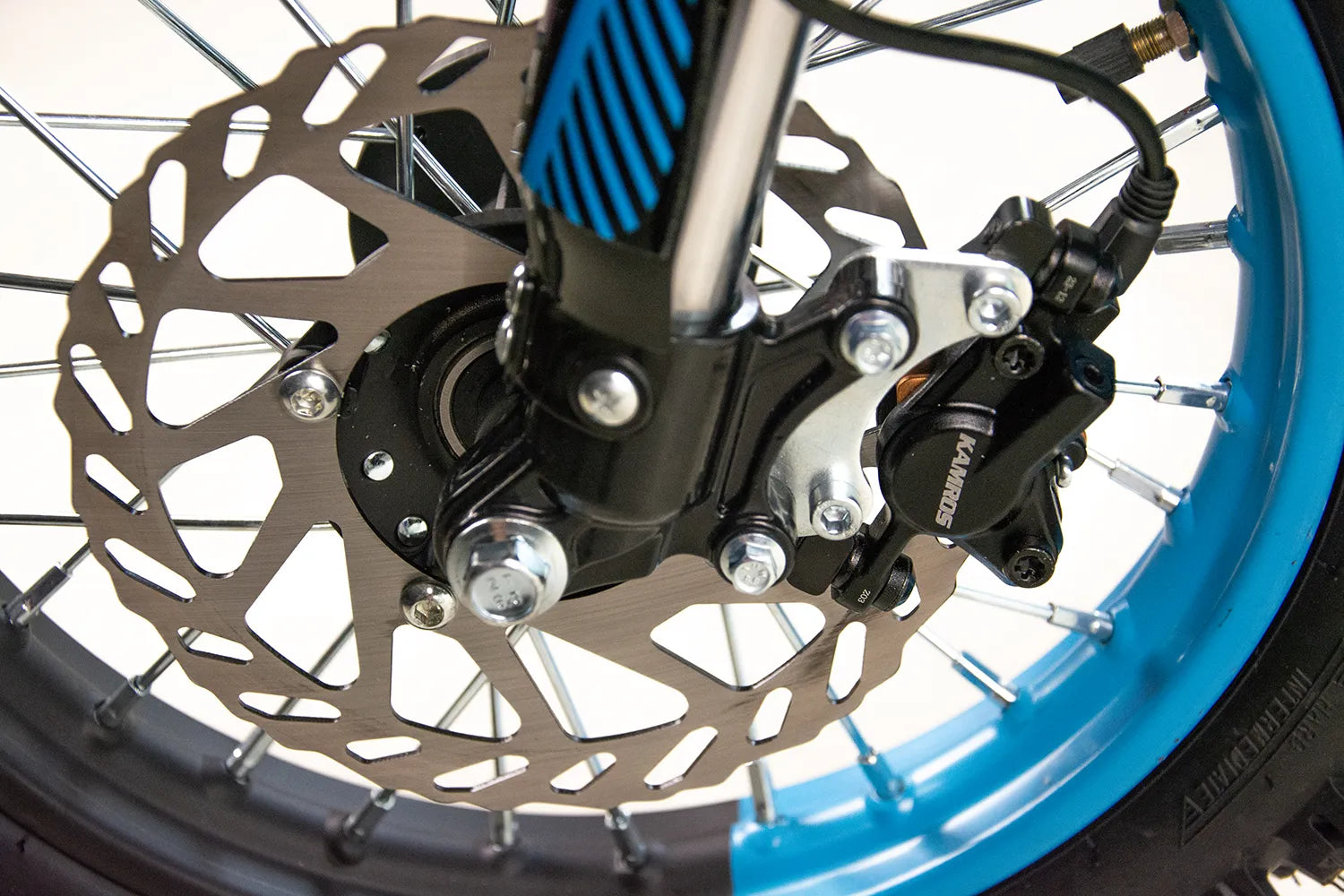 Model ten otrzymał aluminiowe 12-calowe felgi z przodu oraz 10-calowe z tyłu wyposażone w kostkowe opony terenowe, które świetnie sprawdzą się zarówno na twardej oraz błotnistej i wyboistej nawierzchni