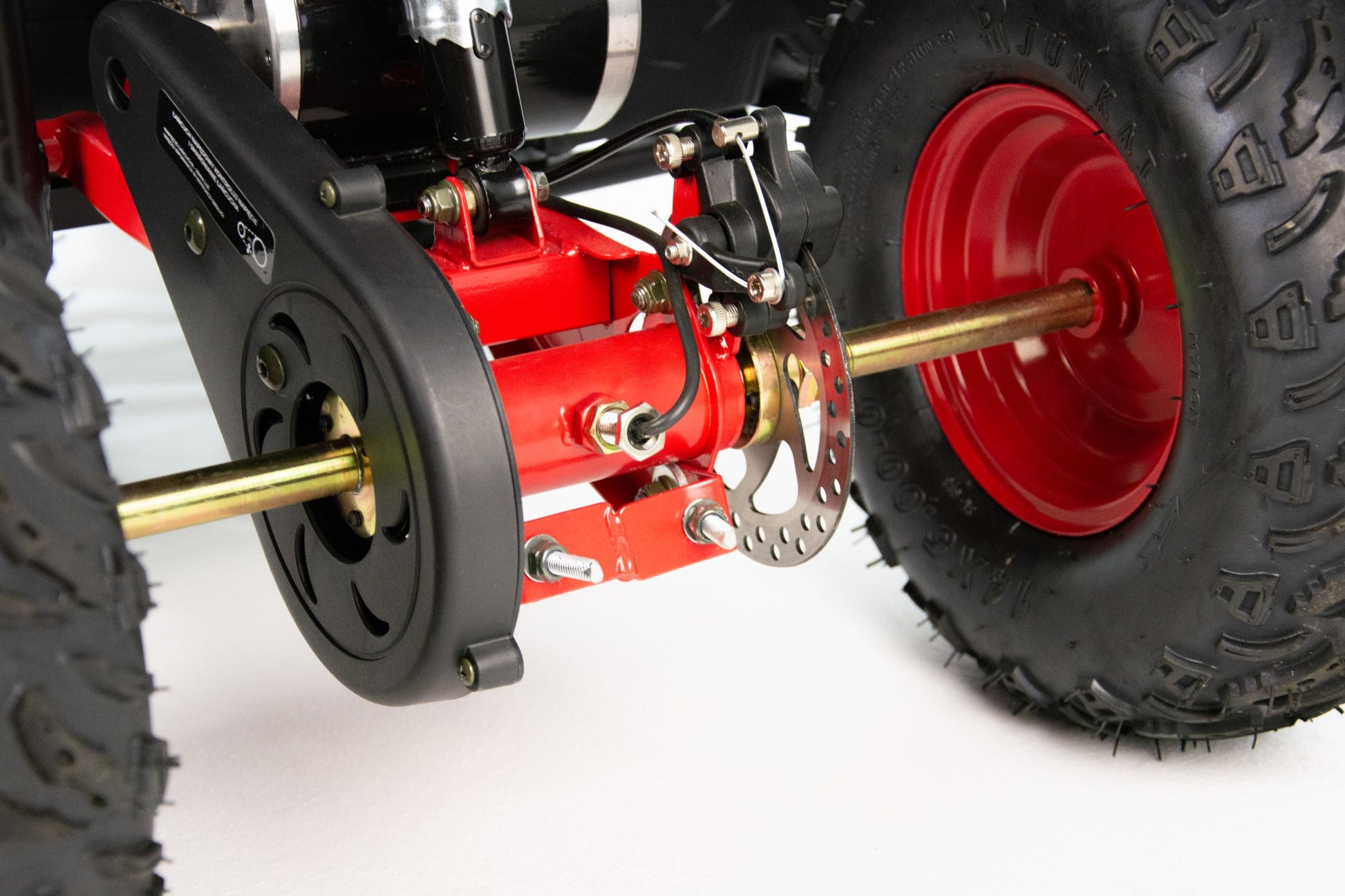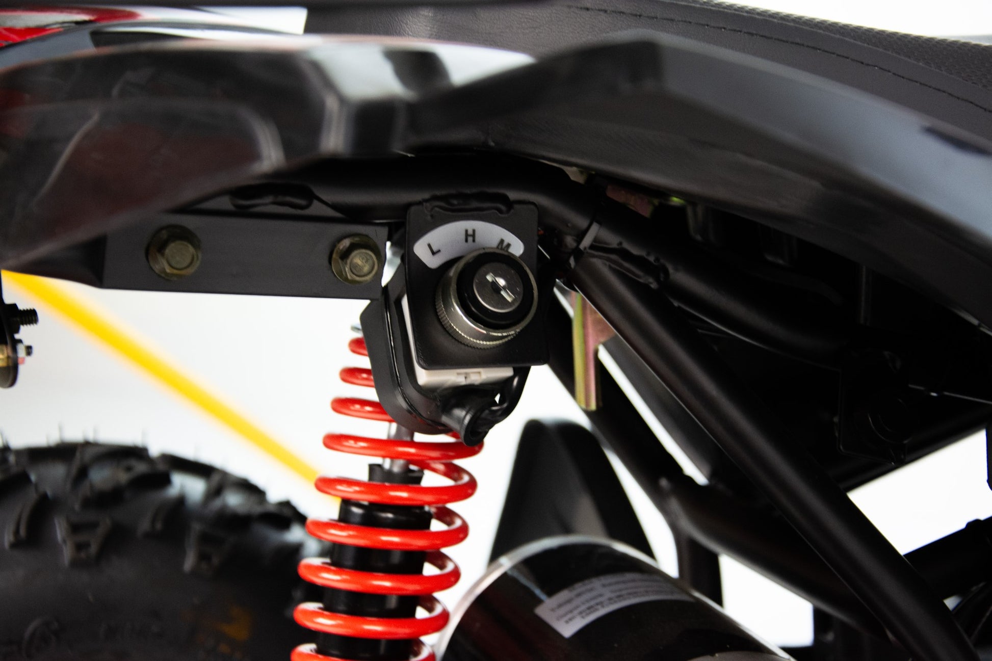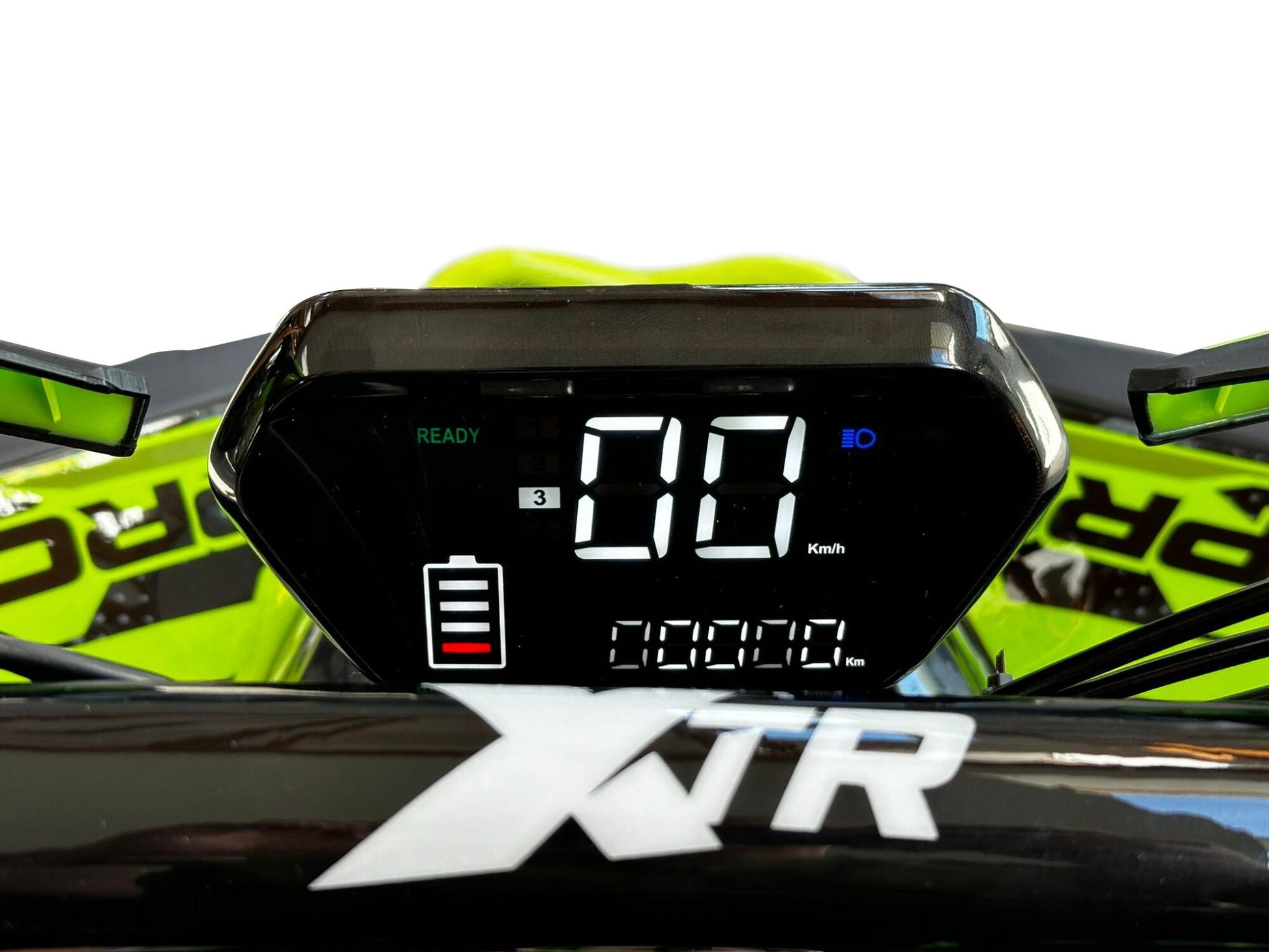Model XTR E-M12 PRO napędza silnik elektryczny o mocy 1200W. Zapewnia on odpowiednie osiągi i daje dużo frajdy z jazdy. Silnik posiada regulację prędkości w 3 zakresach. Po ustawieniu odpowiedniego zakresu wyciągamy kluczyk i mamy pewność, że nasza pociecha sama nie zmieni sobie ustawień