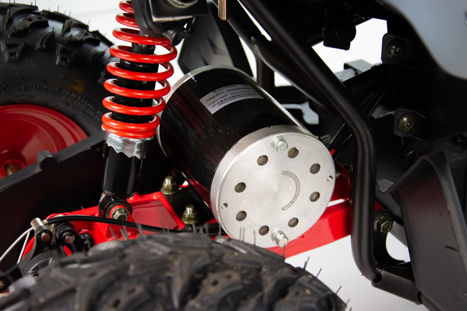 Mini quad E-M12 PRO to pojazd z silnikiem elektrycznym o mocy 1200W. Wyposażony jest w 3-stopniową regulację prędkości ustawianą za pomocą stacyjki z kluczykiem. Posiada bieg do przodu i wsteczny. Zasilany jest baterią 48V, 12Ah. Jest to największy model z mini quadów oraz najlepiej wyposażony. Posiada licznik cyfrowy, oświetlenie LED przód i tył, kierunkowskazy, handbary, lusterka oraz klakson