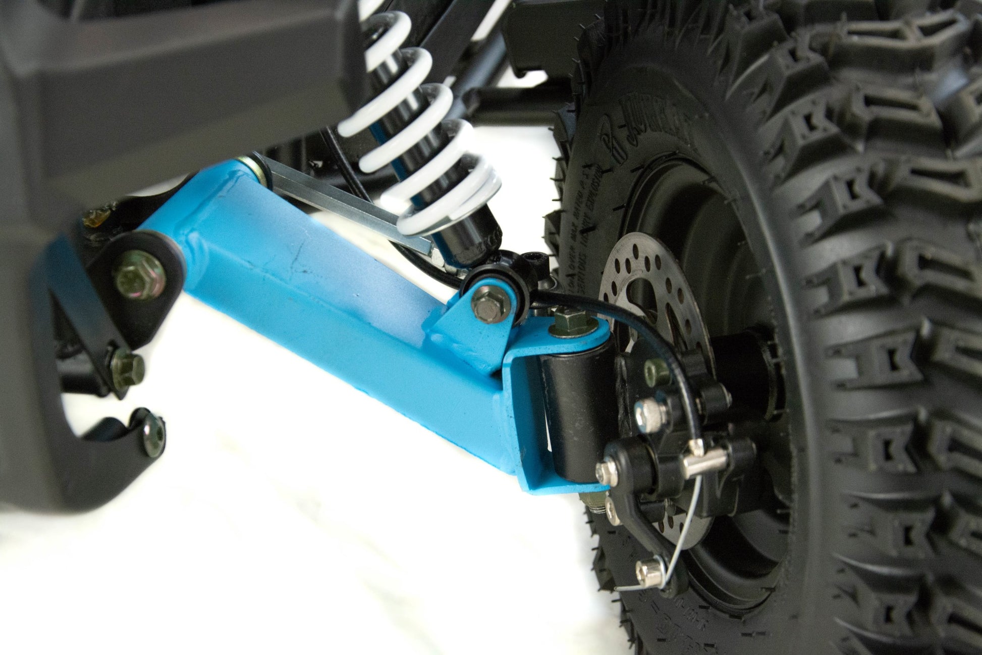 Przednie zawieszenie zostało wyposażone w dwa amortyzatory sprężynowe umieszczone na każdym wahaczu. Z tyłu mamy do dyspozycji jeden, centralnie umieszczony amortyzator sprężynowy. Amortyzatory posiadają regulację twardości