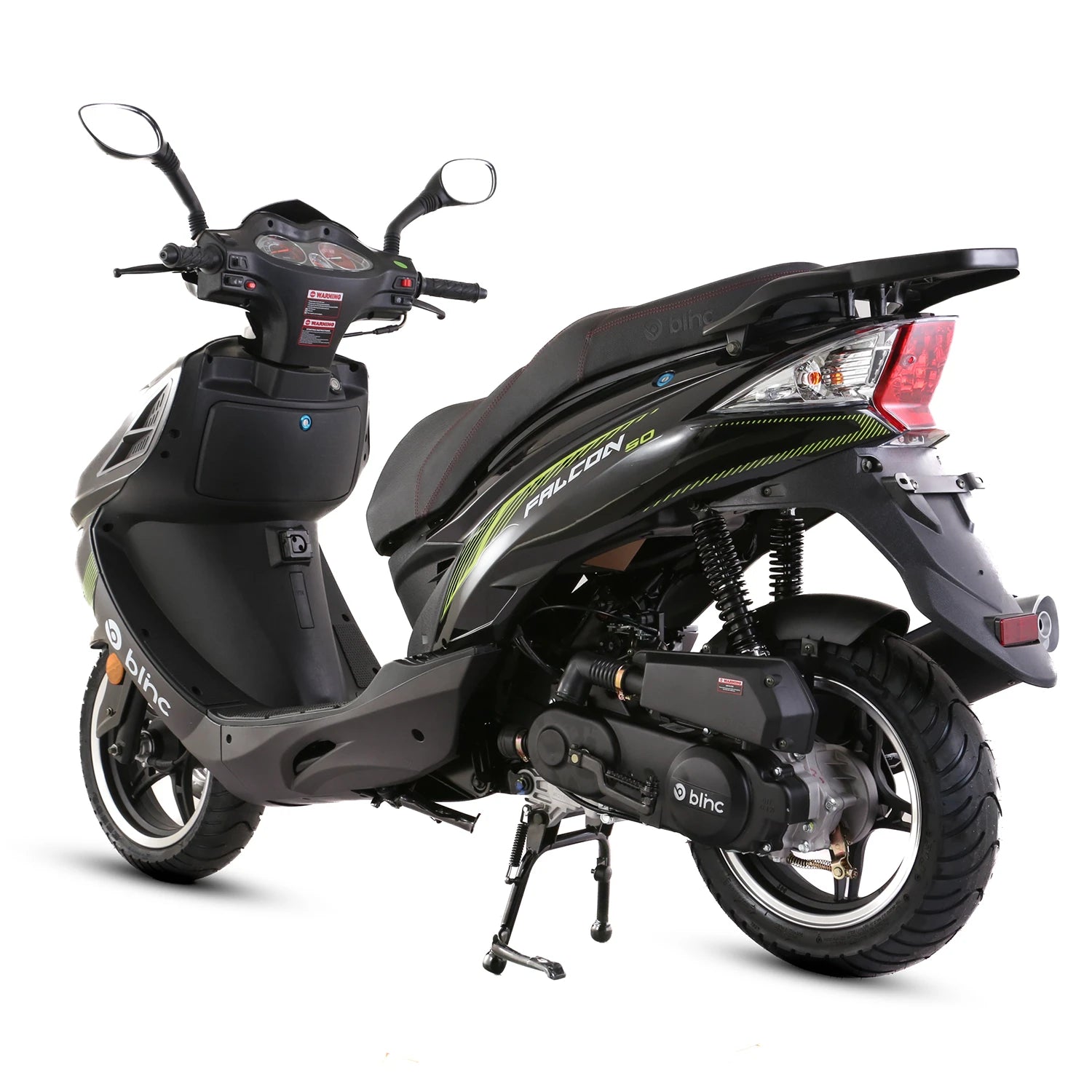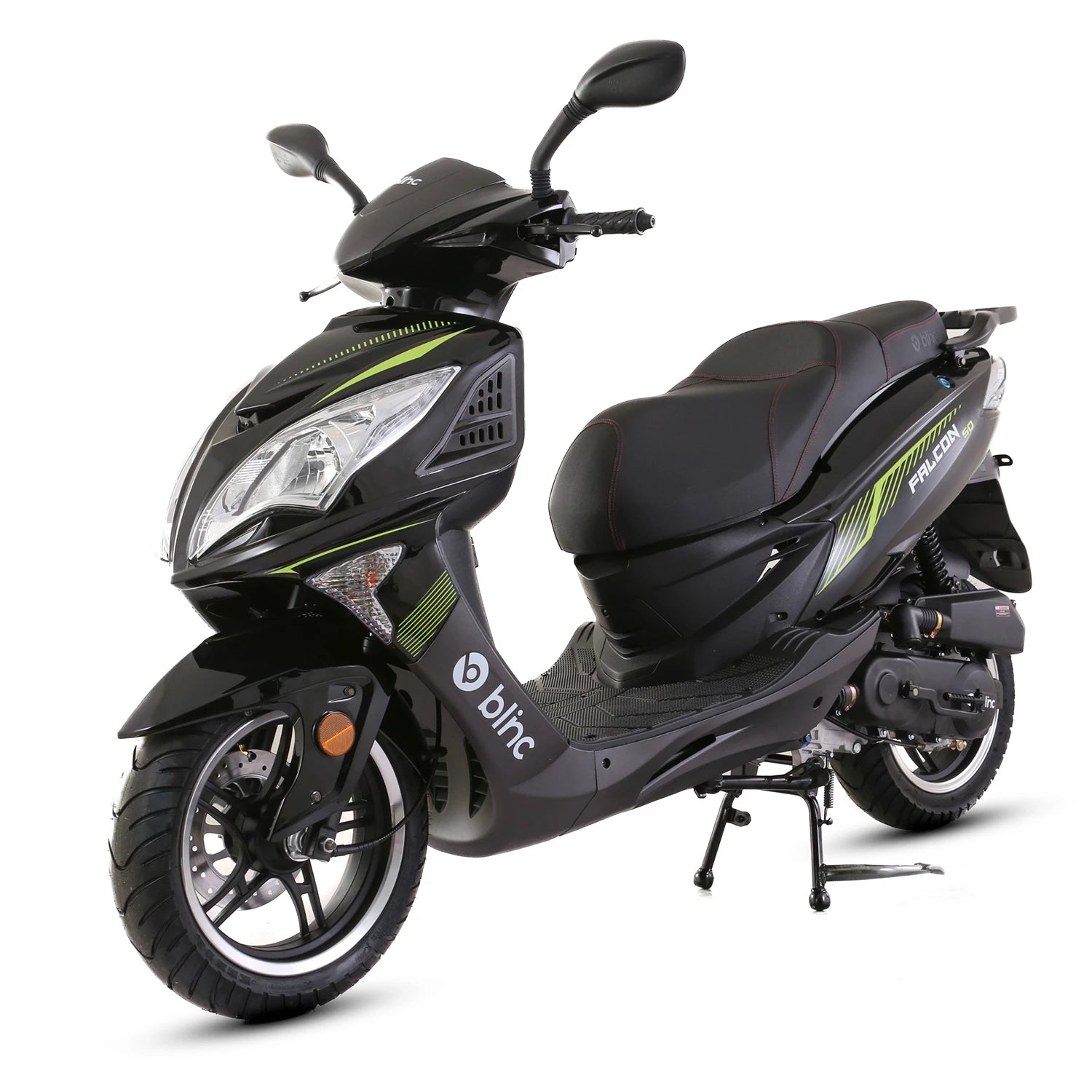 Bezpieczeństwo to podstawa, dlatego skuter Blinc Falcon wyposażony jest w hydrauliczne hamulce tarczowe z przodu, oraz bębnowe z tyłu, które zapewniają natychmiastową reakcję i doskonałą kontrolę nad pojazdem, niezależnie od warunków na drodze. Dzięki niemu możesz czuć się pewnie zarówno podczas dynamicznego manewru w mieście, jak i przy spokojnym zatrzymywaniu się na światłach.