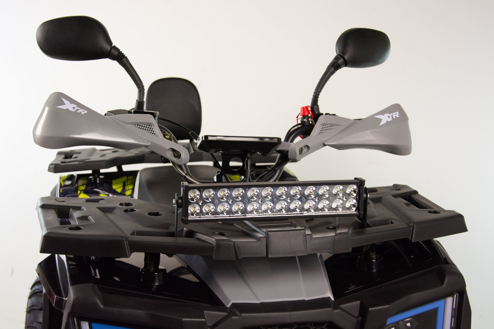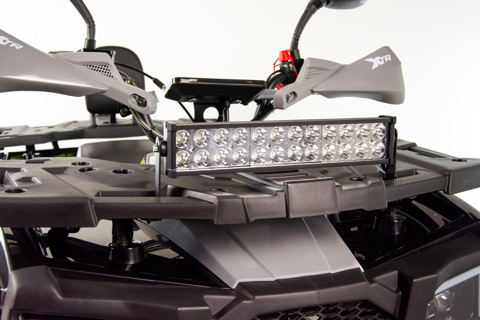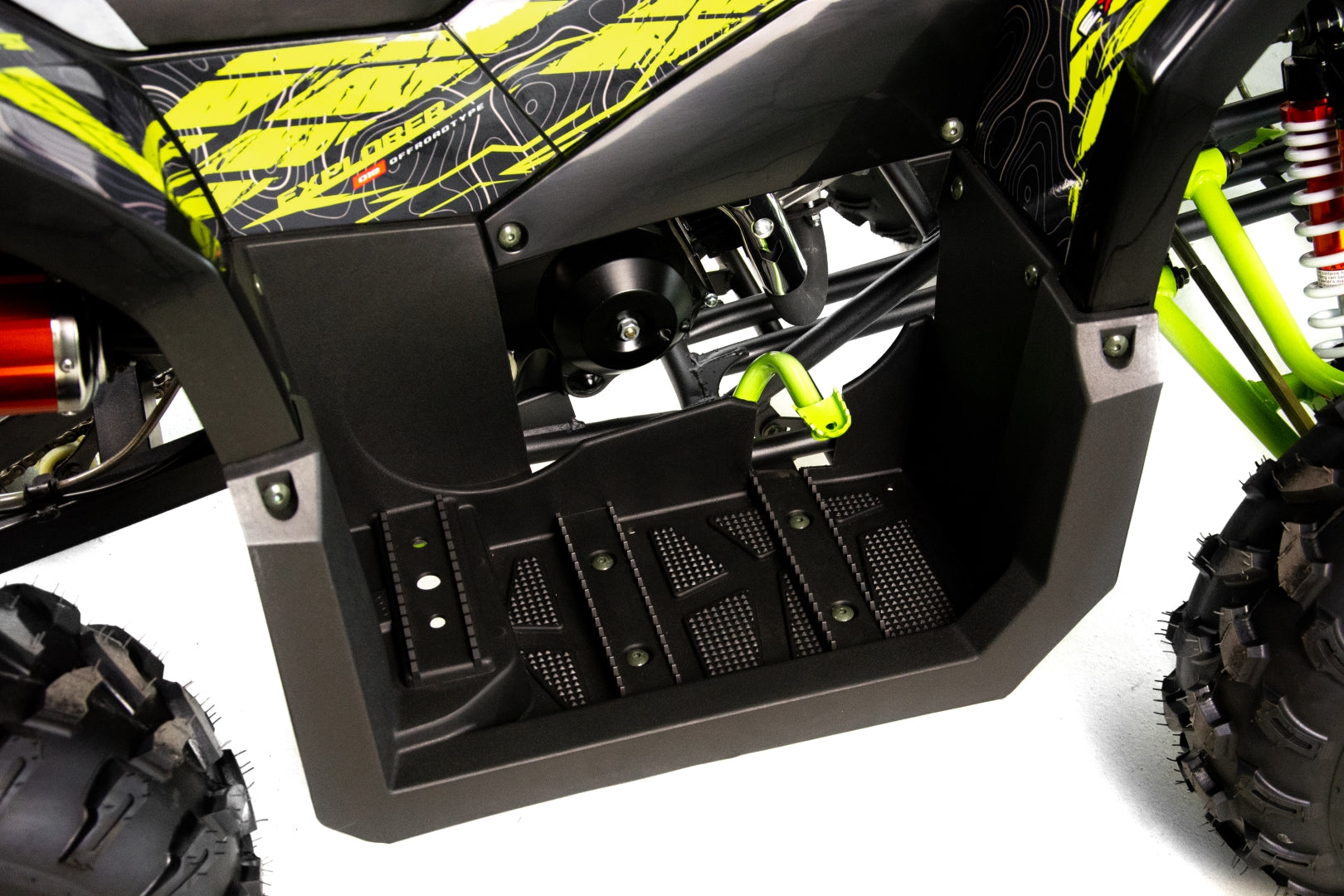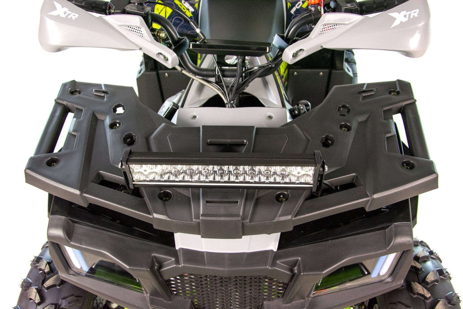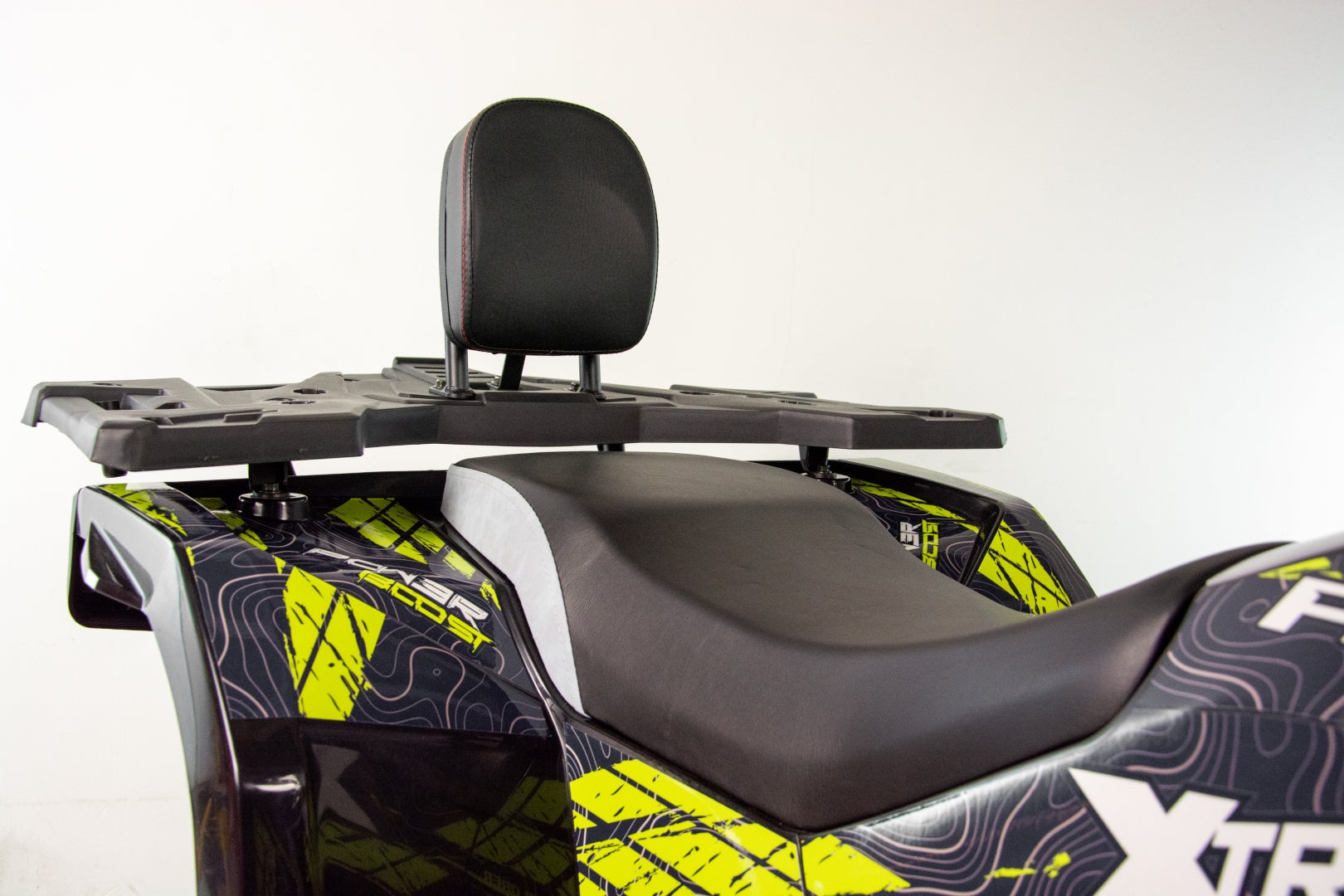 Quad wyposażony jest w dwa obszerne bagażniki z przodu i z tyłu pojazdu. Pozwolą one na zabranie wielu niezbędnych rzeczy do wyprawy w teren. Dedykowane nakładki plastikowe posiadają wiele punktów mocowań oraz dopełniają walorów wizualnych