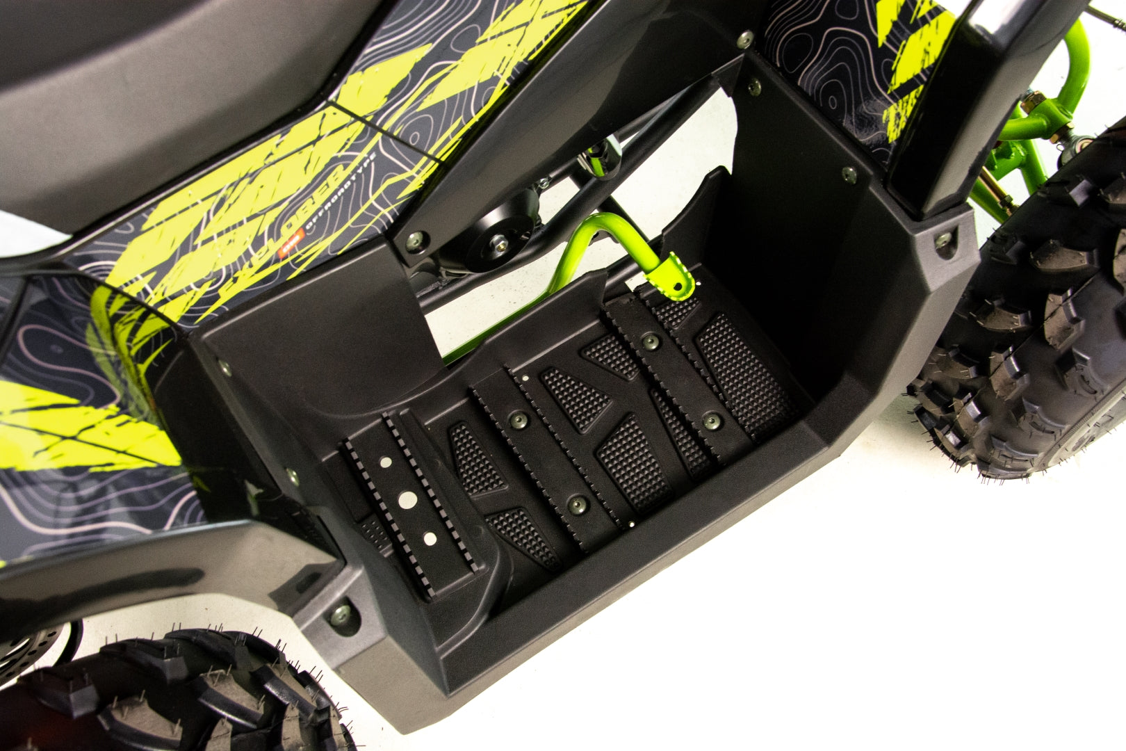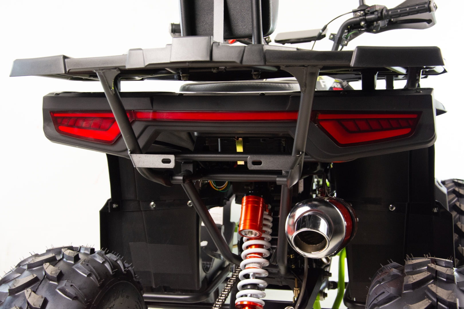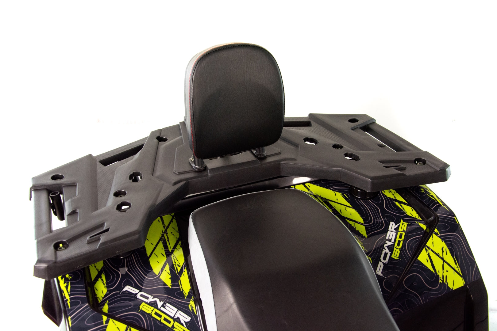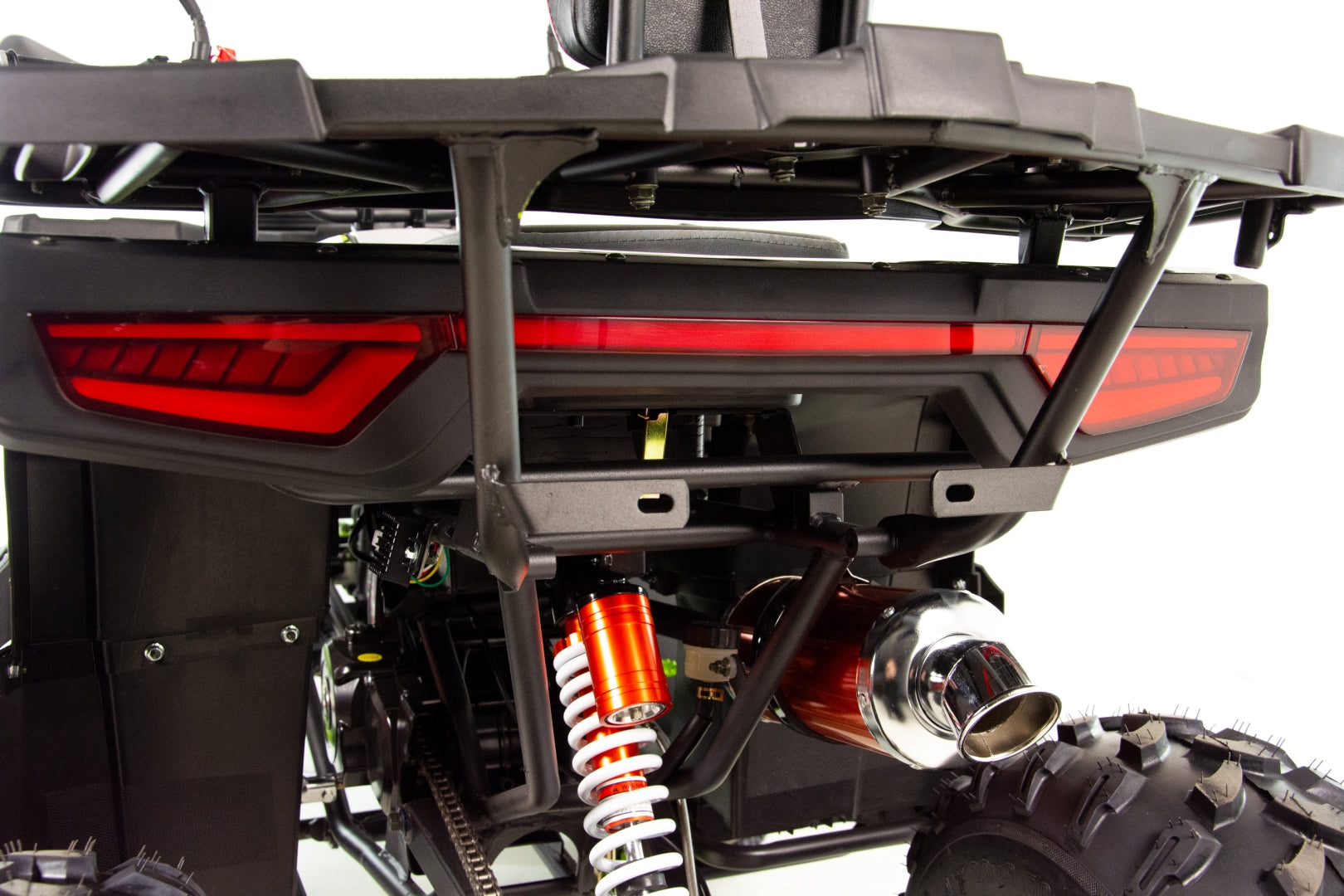 Quad wyposażony jest w dwa obszerne bagażniki z przodu i z tyłu pojazdu. Pozwolą one na zabranie wielu niezbędnych rzeczy do wyprawy w teren. Dedykowane nakładki plastikowe posiadają wiele punktów mocowań oraz dopełniają walorów wizualnych