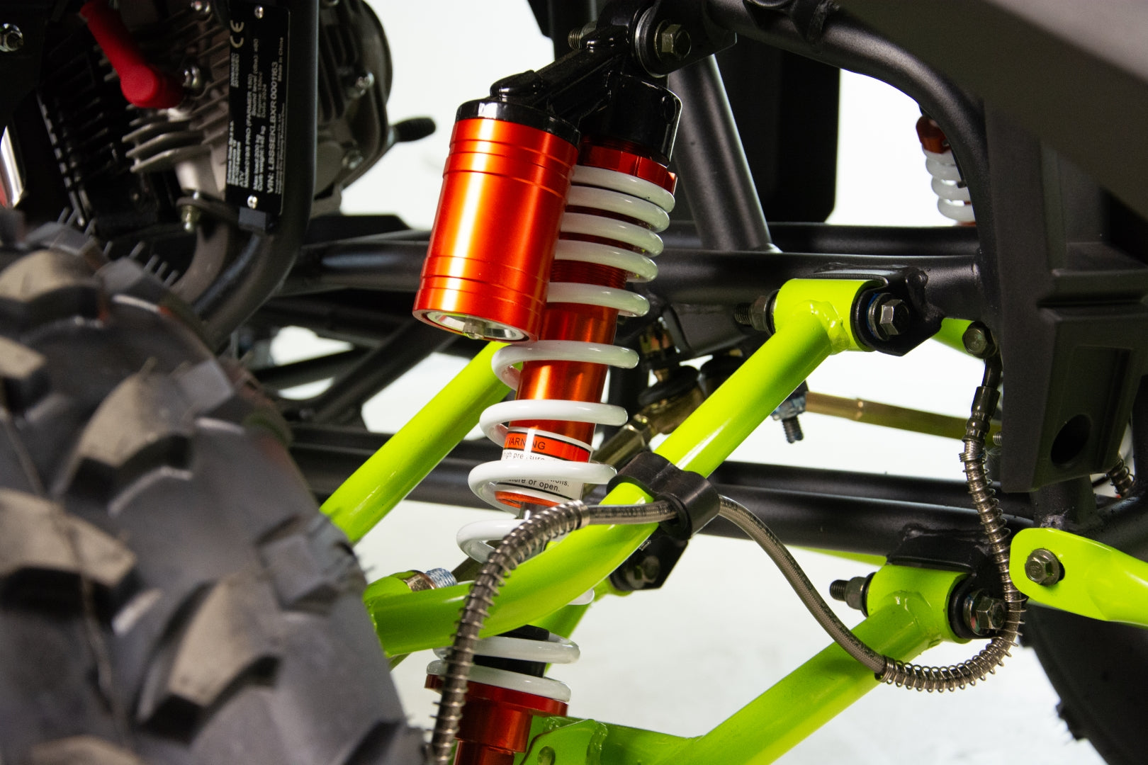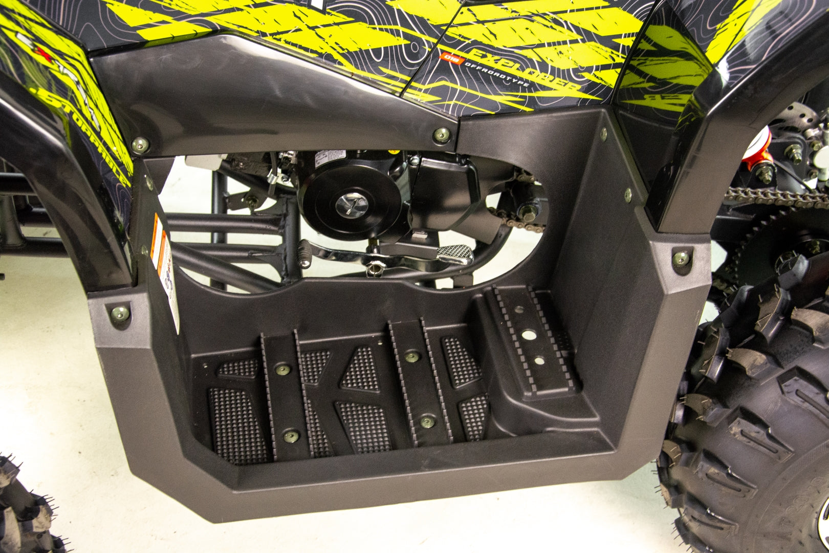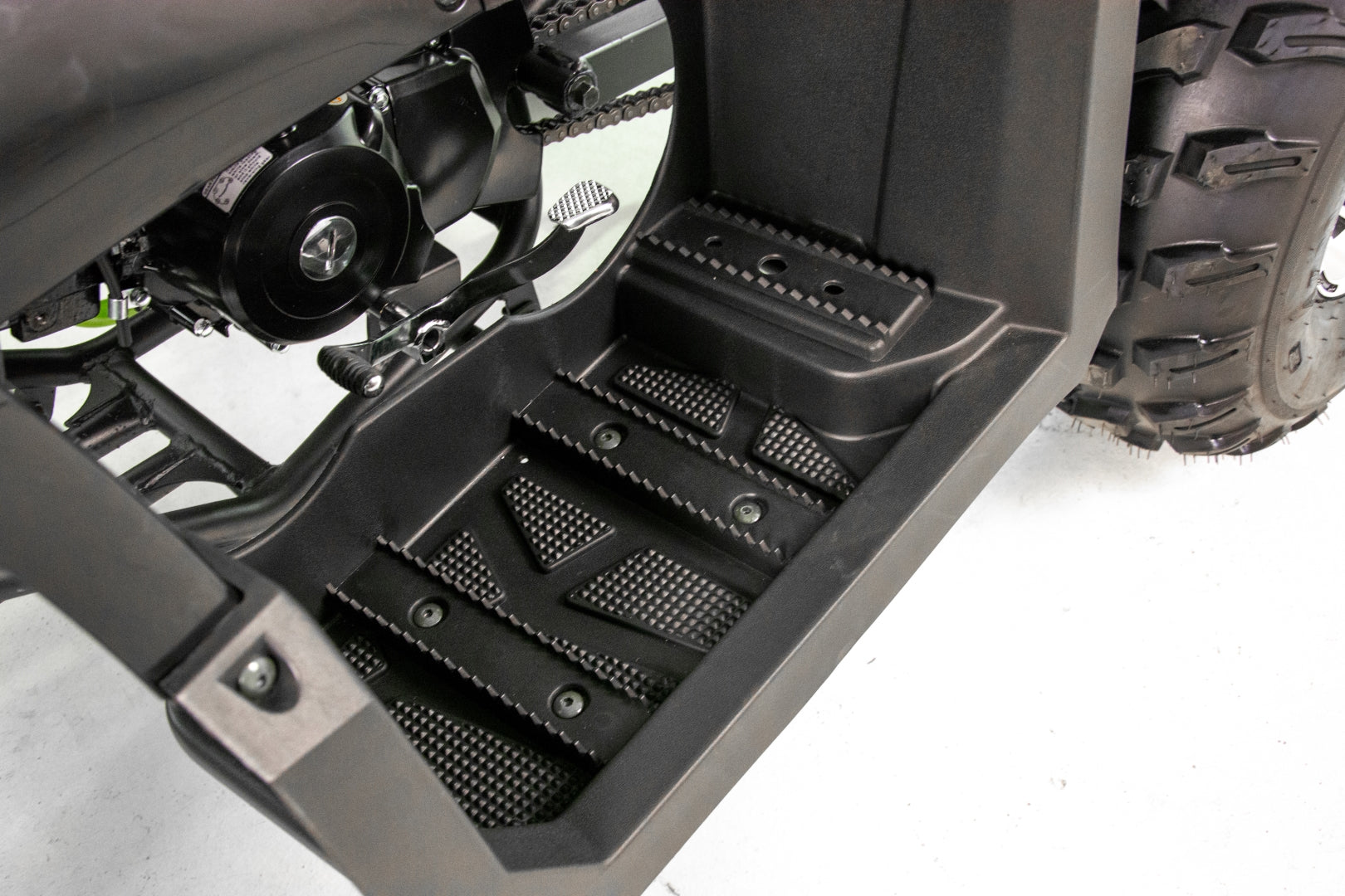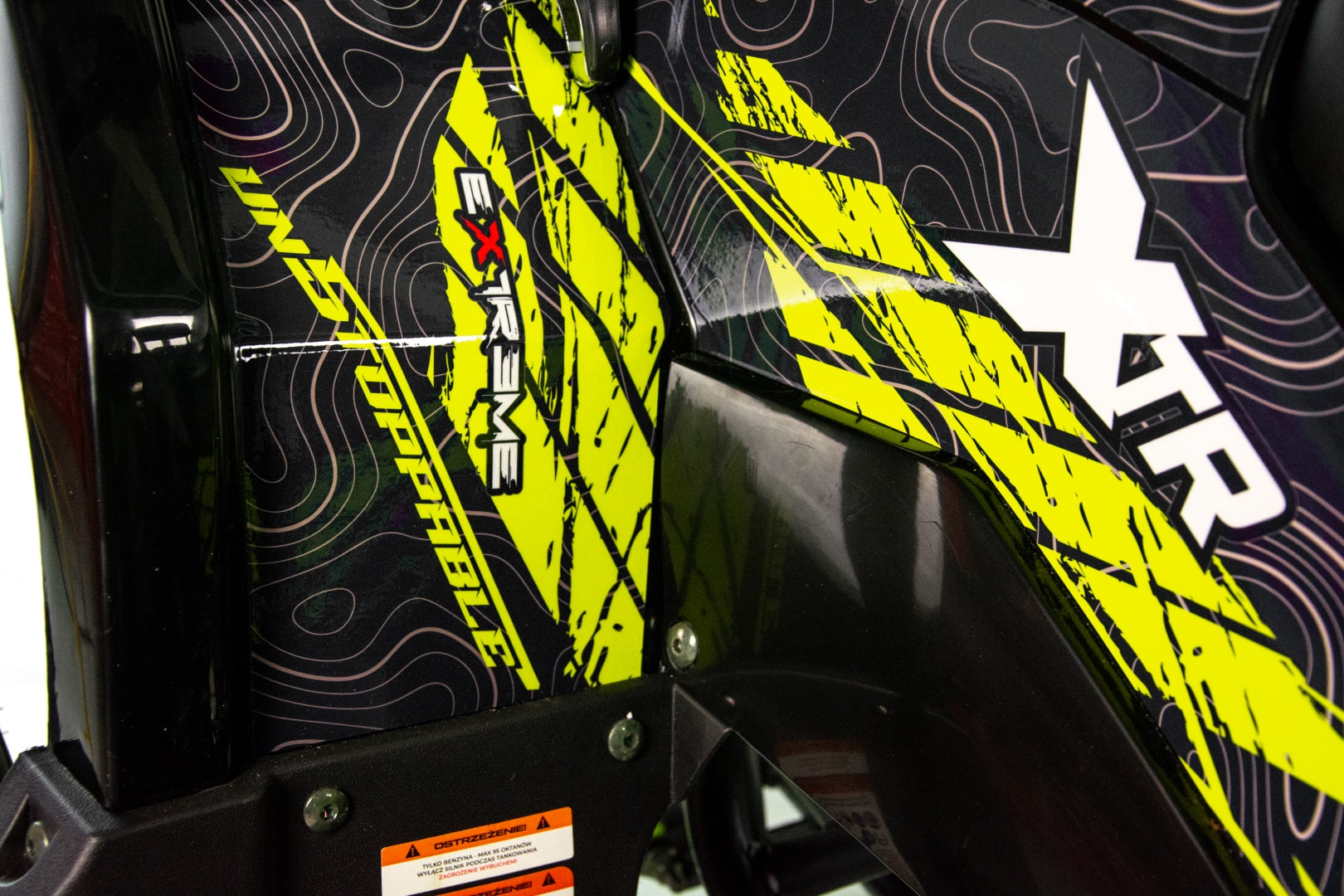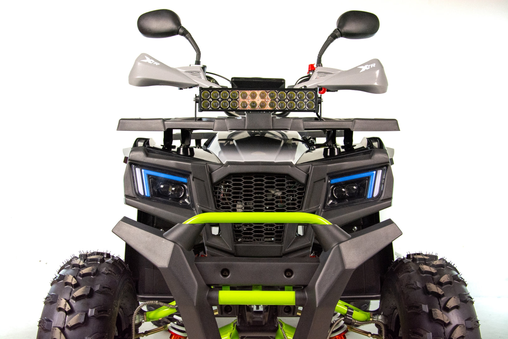 Quad wyposażony jest w dwa obszerne bagażniki z przodu i z tyłu pojazdu. Pozwolą one na zabranie wielu niezbędnych rzeczy do wyprawy w teren. Dedykowane nakładki plastikowe posiadają wiele punktów mocowań oraz dopełniają walorów wizualnych