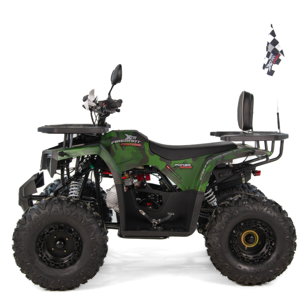 Model FIRESHOT PRO to przeprawowy quad z jednocylindrowym silnikiem czterosuwowym o pojemności 125cm3. Silnik jest chłodzony powietrzem. Pojazd zestawiony na 8-calowych kołach. Występuje w 2 konfiguracjach skrzyni biegów:
