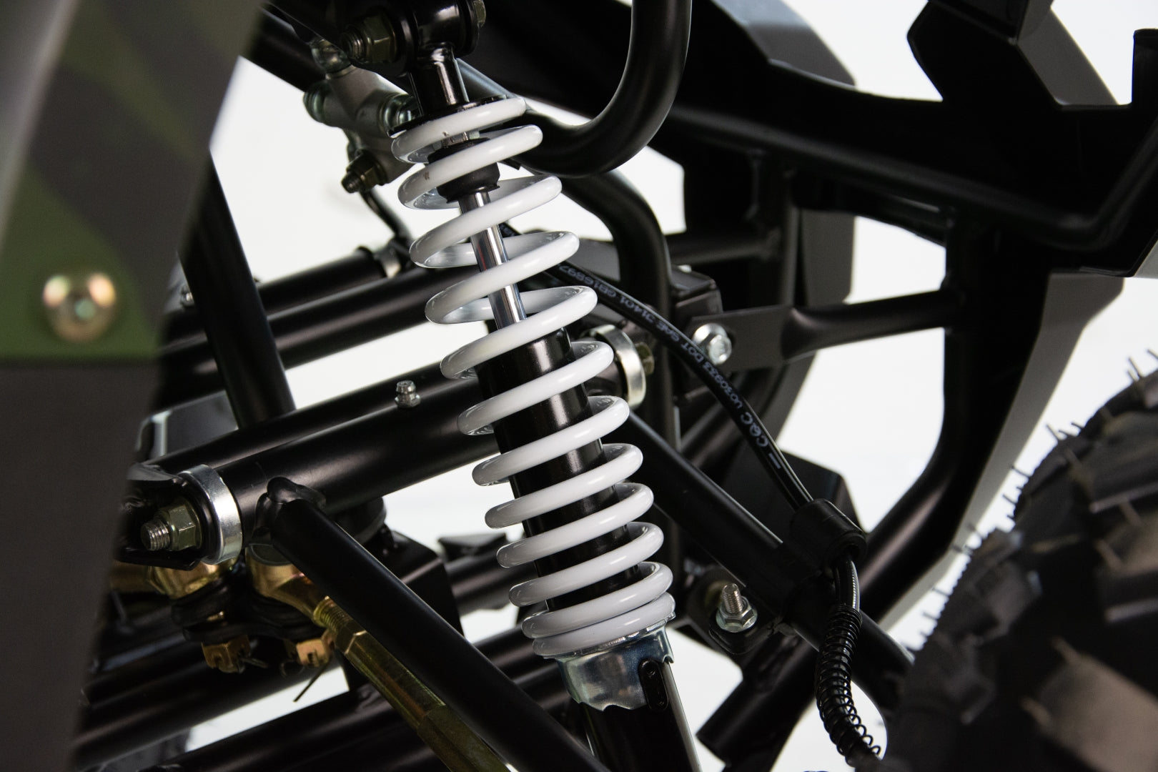 Przednie zawieszenie stanowią 2 amortyzatory umieszczone na obu wahaczach, a z tyłu mamy centralnie umieszczony amortyzator olejowy. Zestawienie takie zapewnia odpowiednie tłumienie nierówności i komfort jazdy