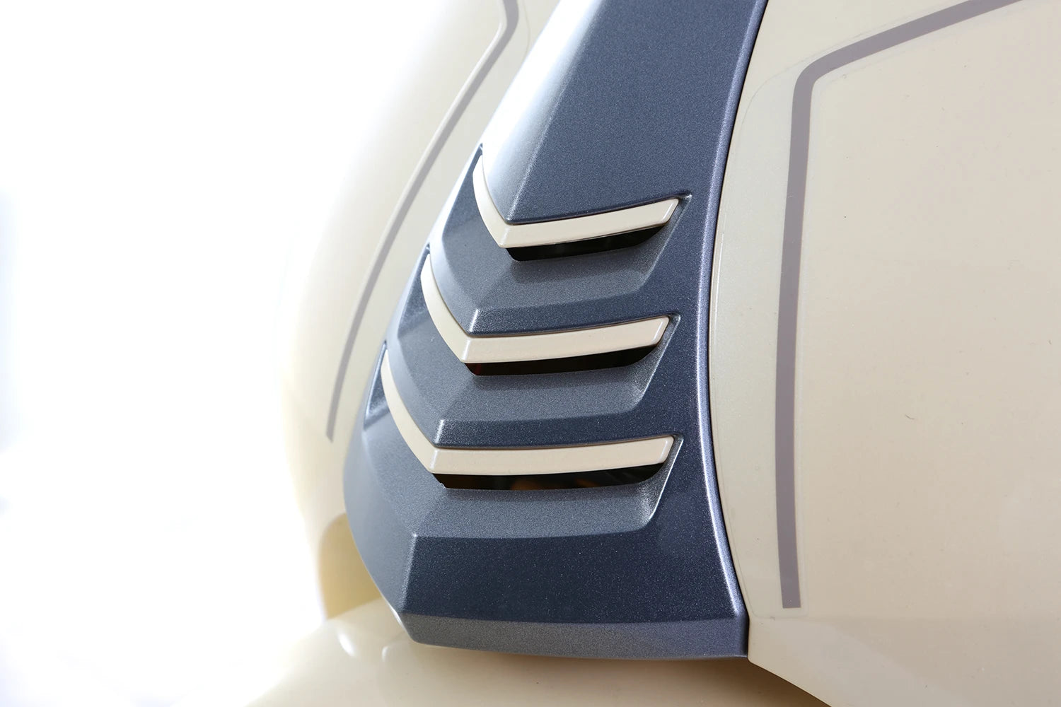 Bezpieczeństwo to podstawa, dlatego skuter Blinc Grace wyposażony jest w hydrauliczne hamulce tarczowe z przodu oraz bębnowe z tyłu, które zapewniają natychmiastową reakcję i doskonałą kontrolę nad pojazdem, niezależnie od warunków na drodze. Dzięki niemu możesz czuć się pewnie zarówno podczas dynamicznego manewru w mieście, jak i przy spokojnym zatrzymywaniu się na światłach.