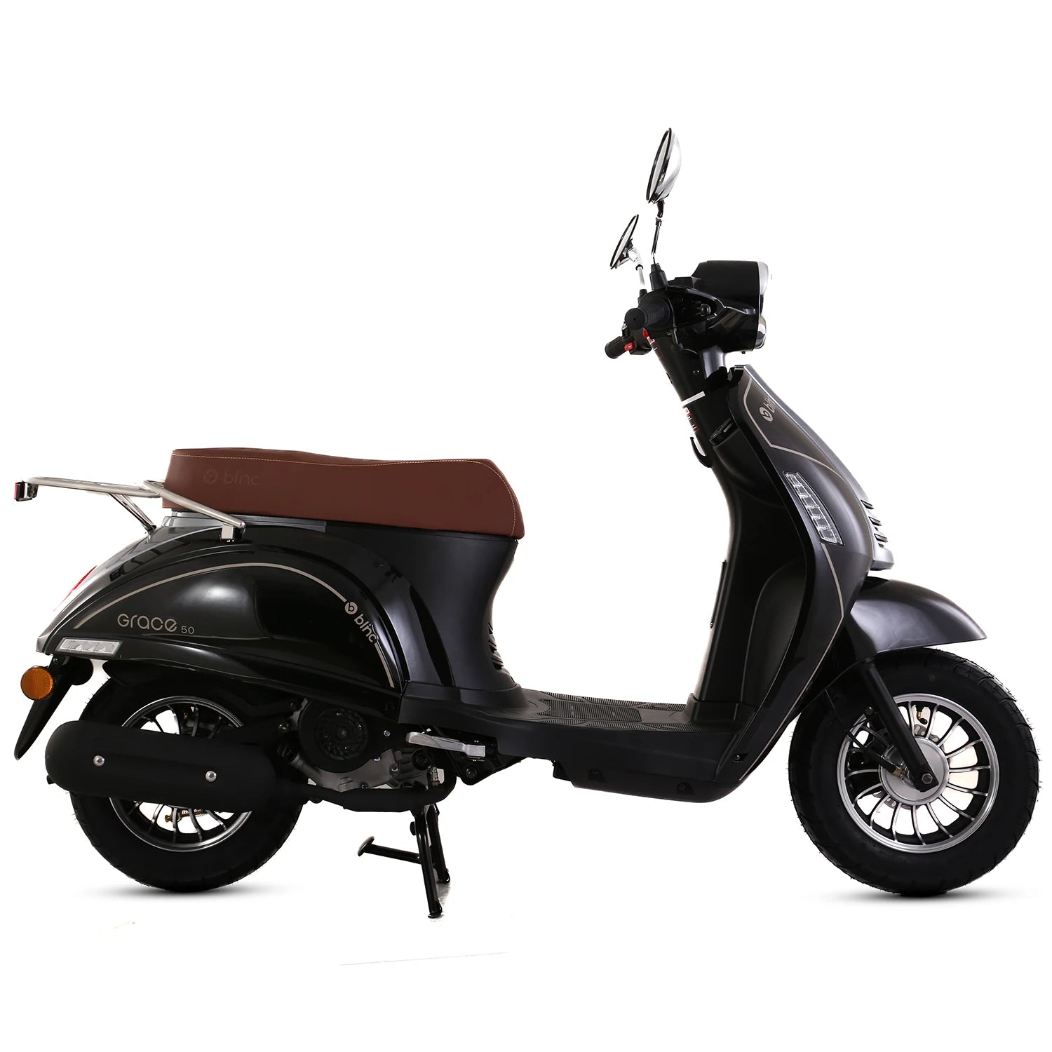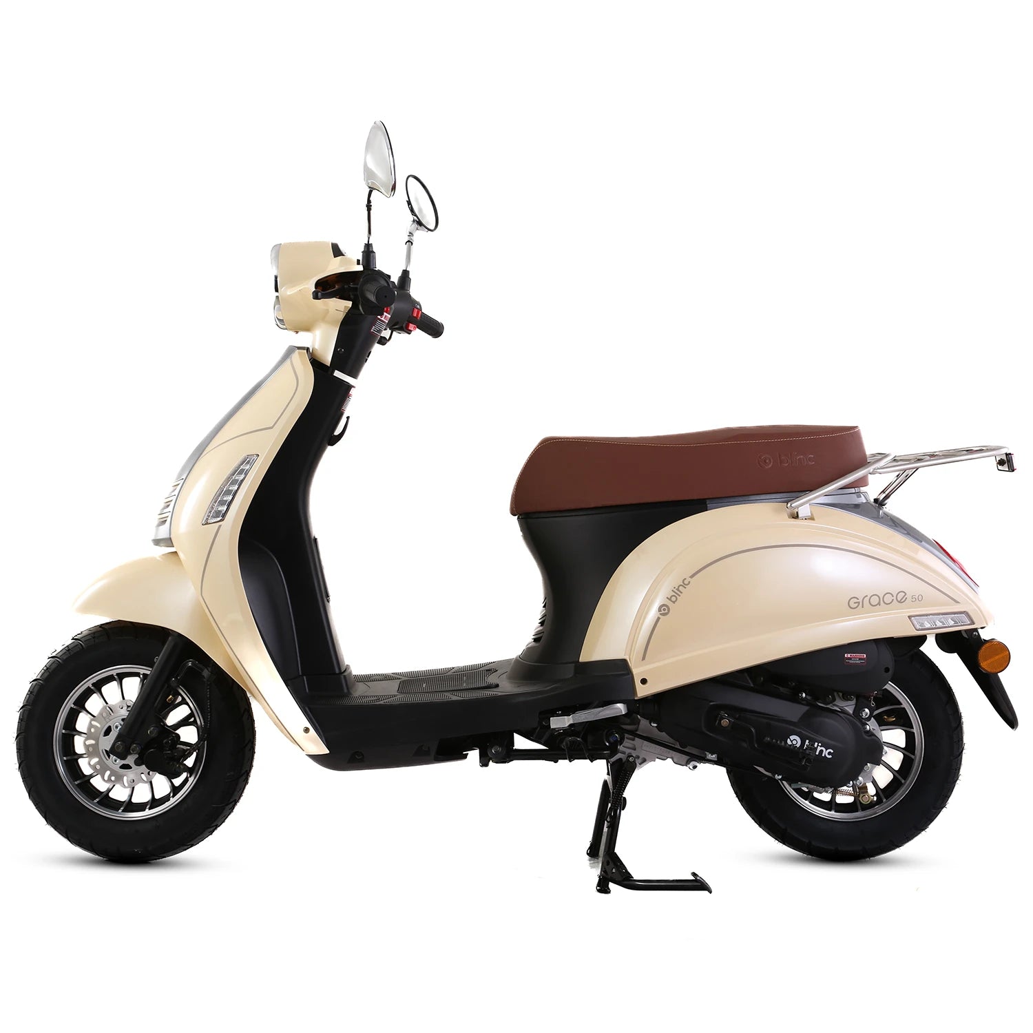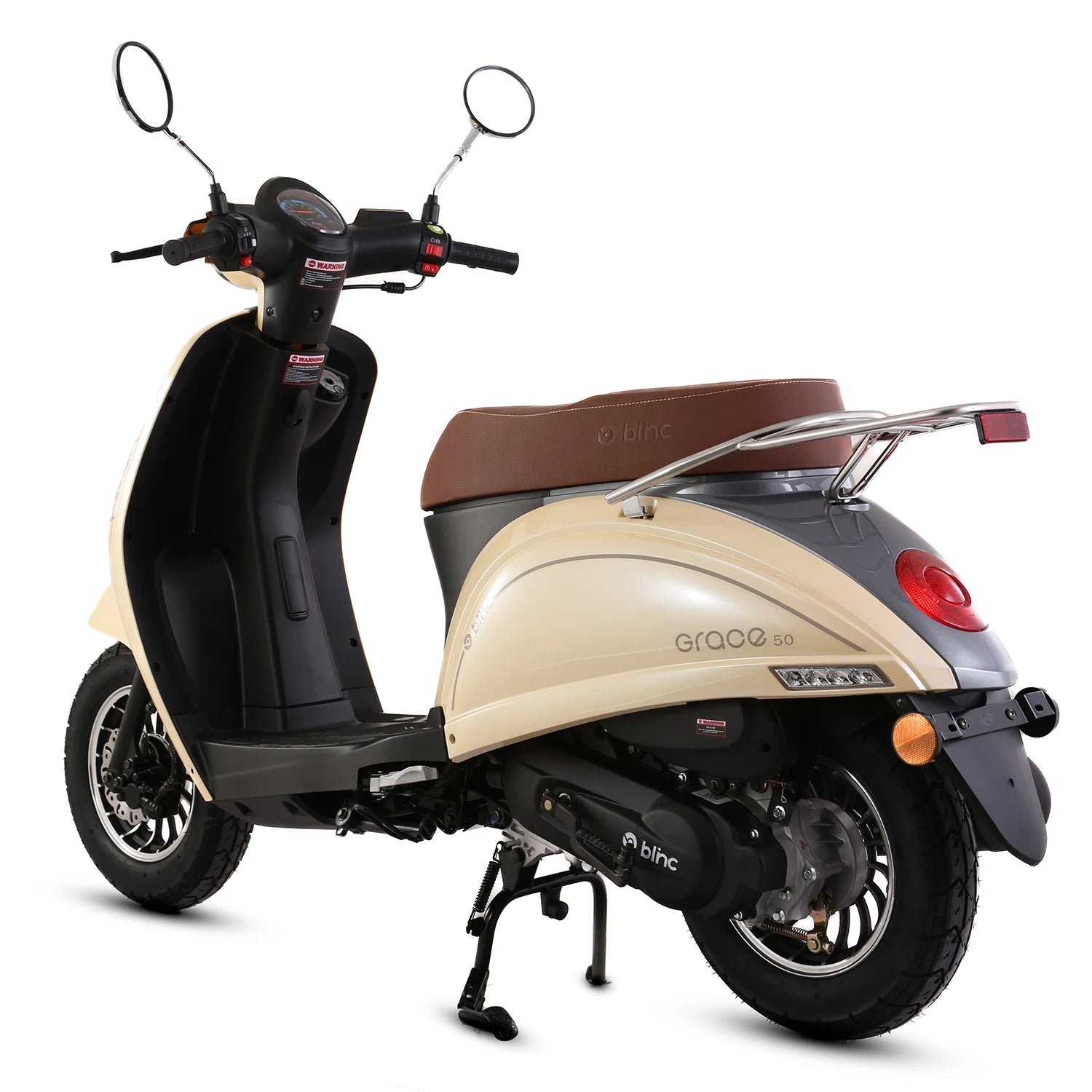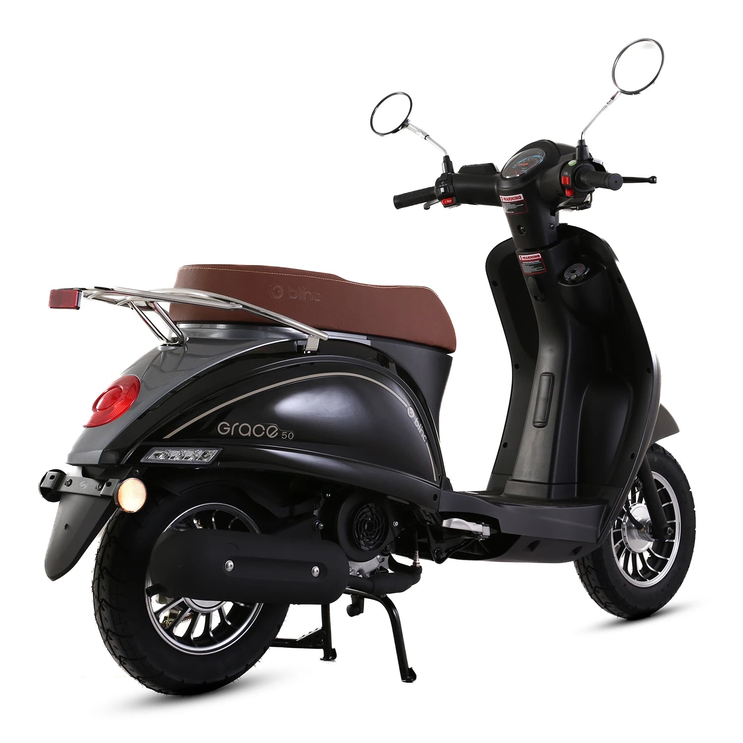 Dla tych, którzy cenią sobie styl bez kompromisów – skuter Blinc Grace to połączenie retro duszy z współczesną funkcjonalnością. Zaprojektowany z myślą o wymagających dorosłych, którzy szukają więcej niż zwykłego środka transportu: to manifest indywidualnego gustu i miłości do detali z przeszłości.