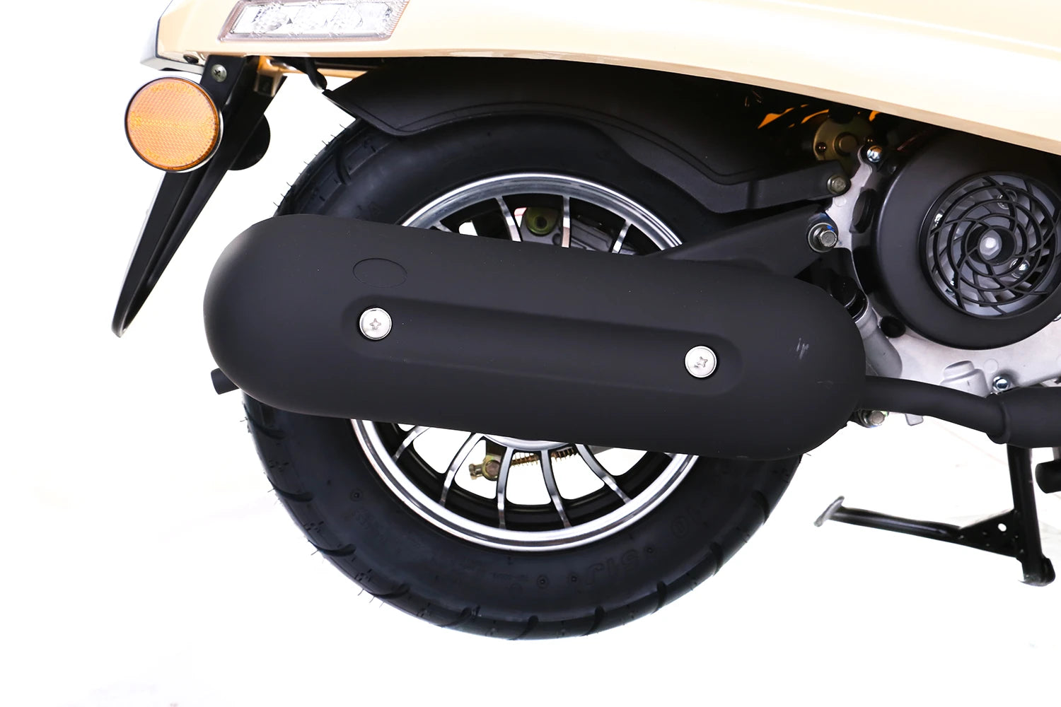 Koła w skuterze Blinc Grace to połączenie solidności i elegancji. 10-calowe aluminiowe felgi nie tylko dodają lekkości i nowoczesnego charakteru, ale także zapewniają doskonałą wytrzymałość na długie lata użytkowania. Dzięki nim skuter zachowuje stabilność nawet na nierównych drogach, a przy tym pozostaje zwrotny i łatwy w manewrowaniu.