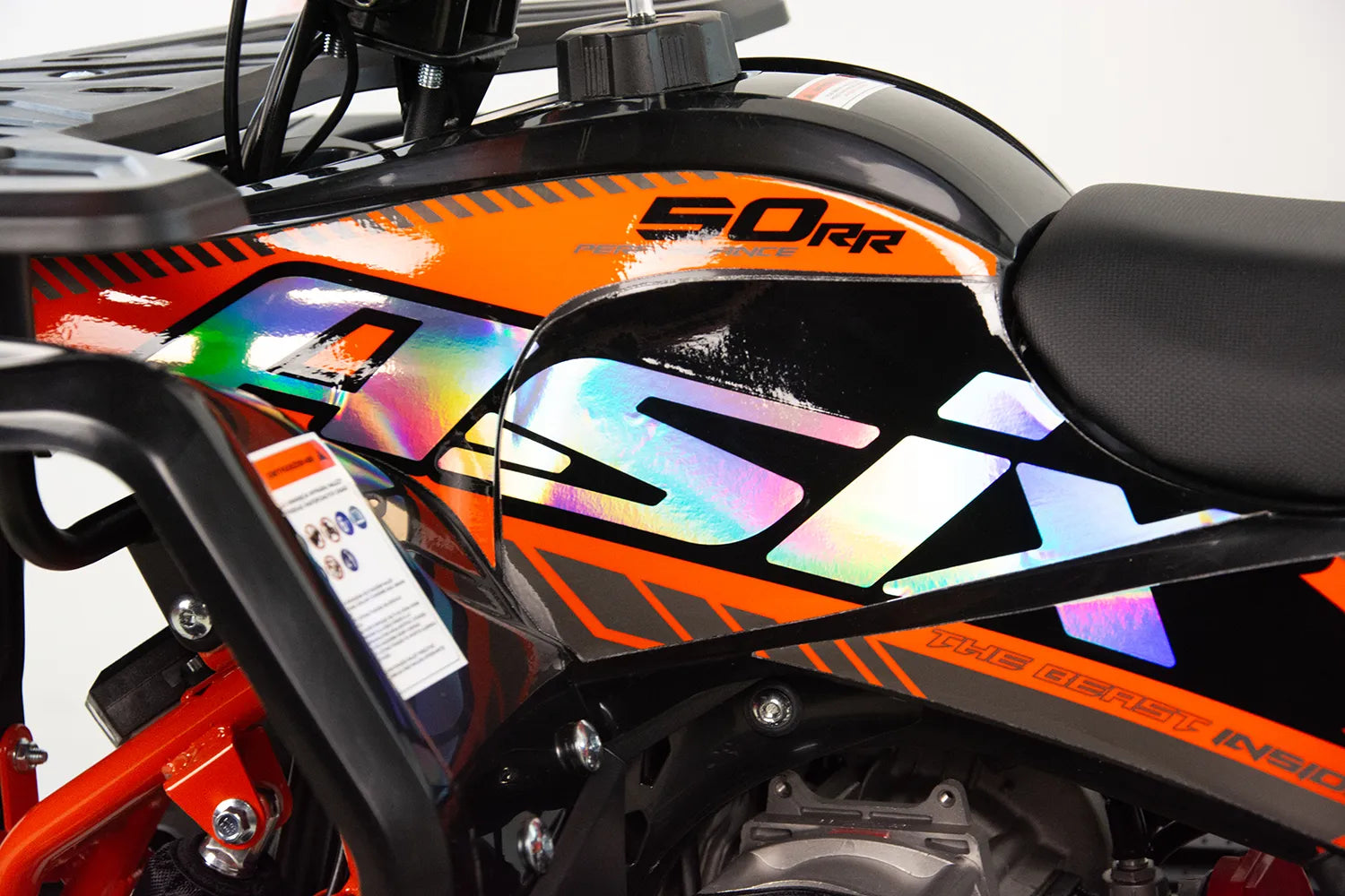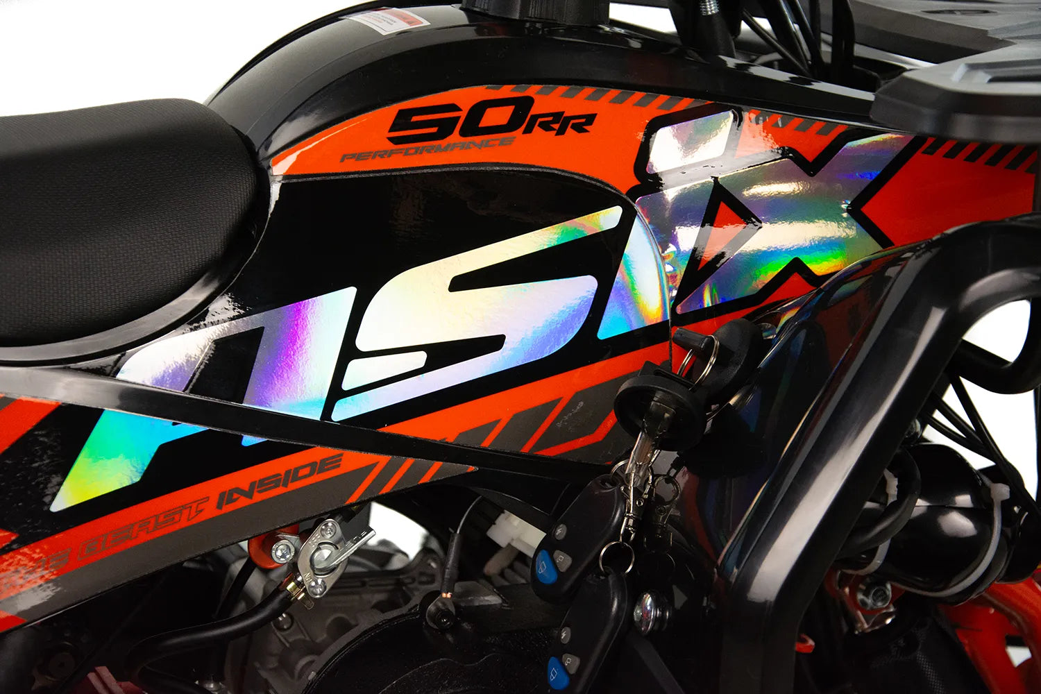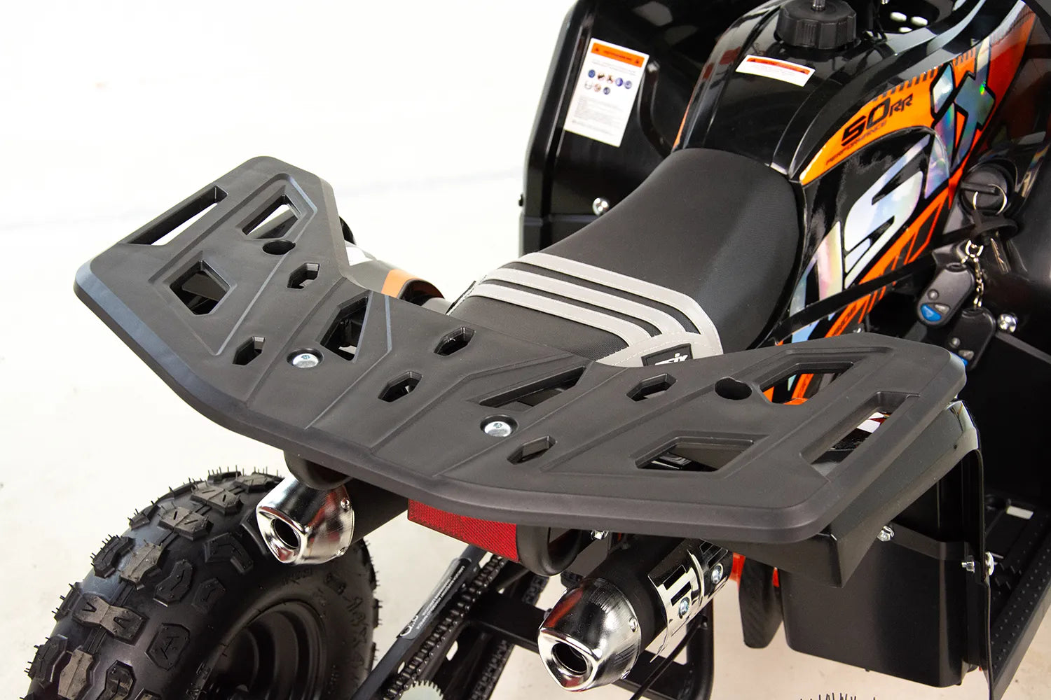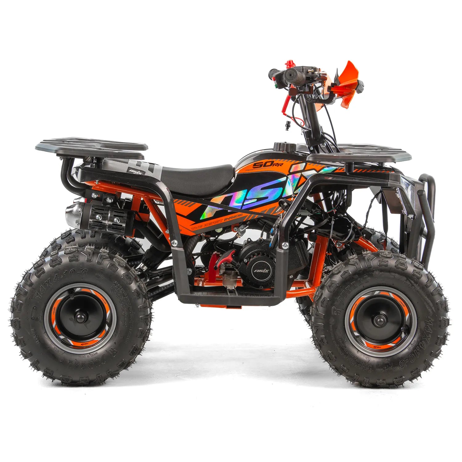 Mini quad ASIX napędza niezawodna jednostka 2-suwowa o pojemność 49cm3. Stanowi ona idealne wprowadzenie do jazdy off-roadowej dla najmłodszych. Odpalanie odbywa się za pomocą rozrusznika elektrycznego lub szarpaka easy starter