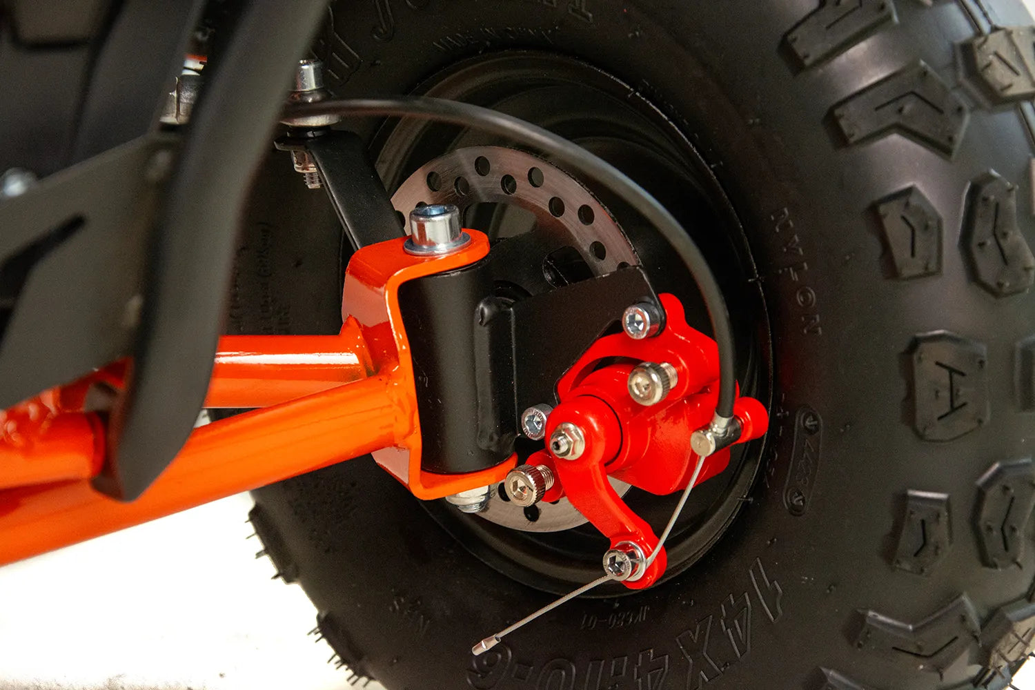 Z przodu pojazd został wyposażony w hamulce tarczowe umieszczone na każdym kole. Z kolei tylny hamulec tarczowy zamontowany jest na tylnej osi. Zapewnia on odpowiednią siłę hamowania obu tylnych kół. Klamki hamulców umieszczone zostały na kierownicy