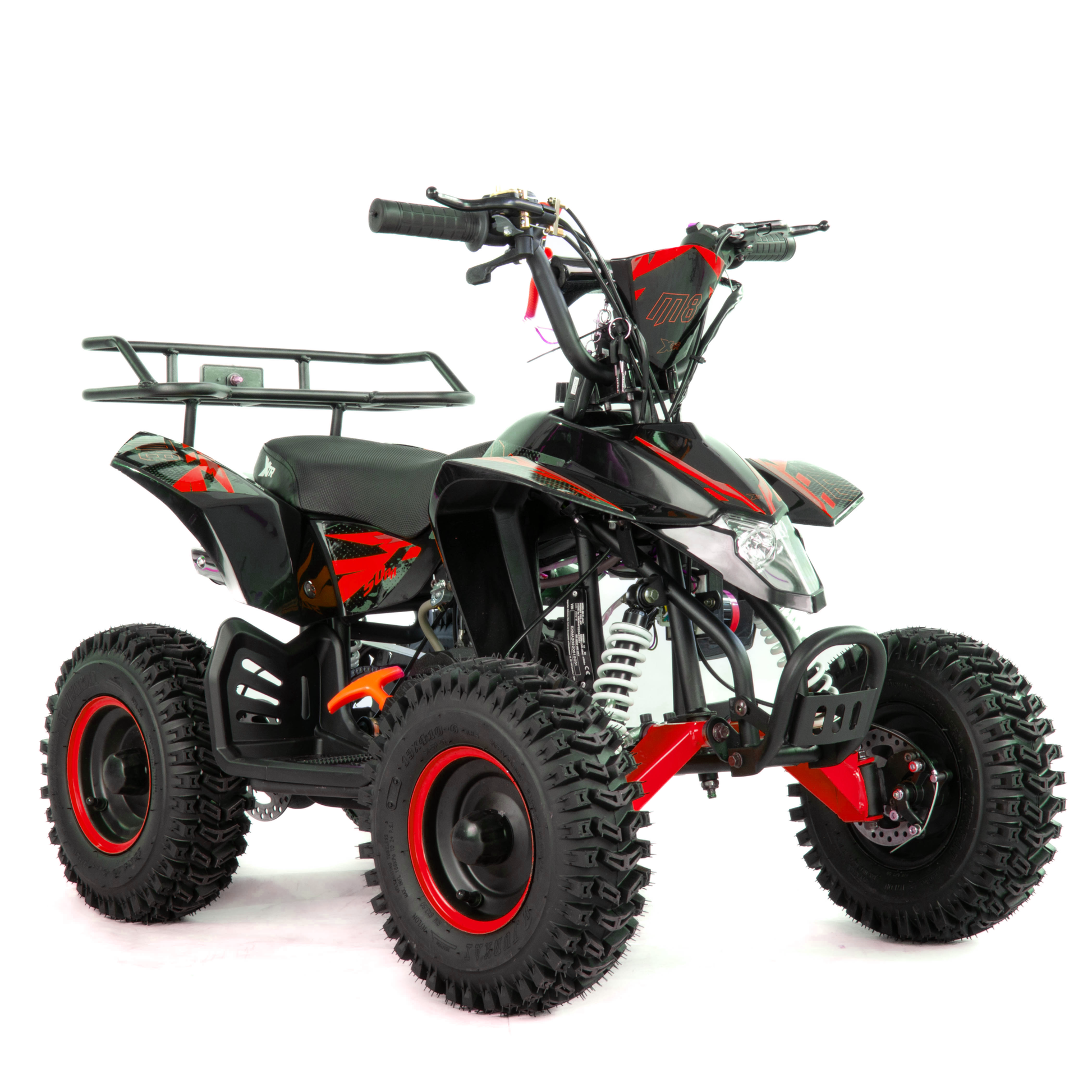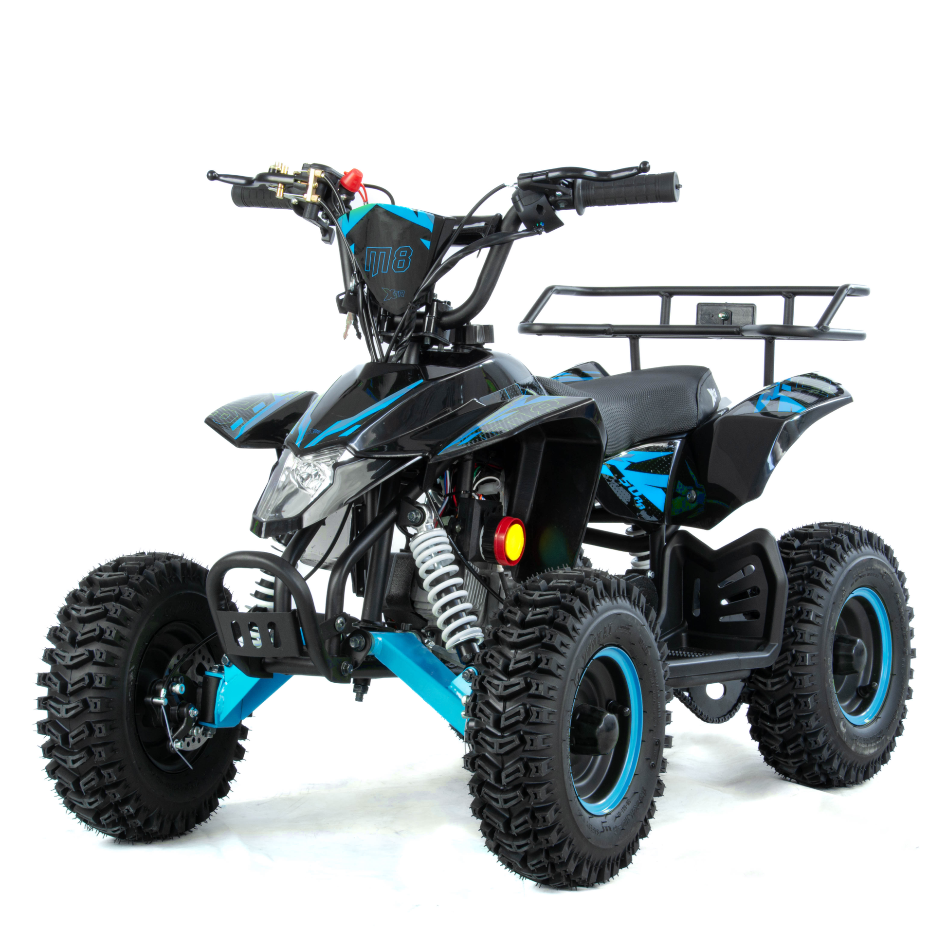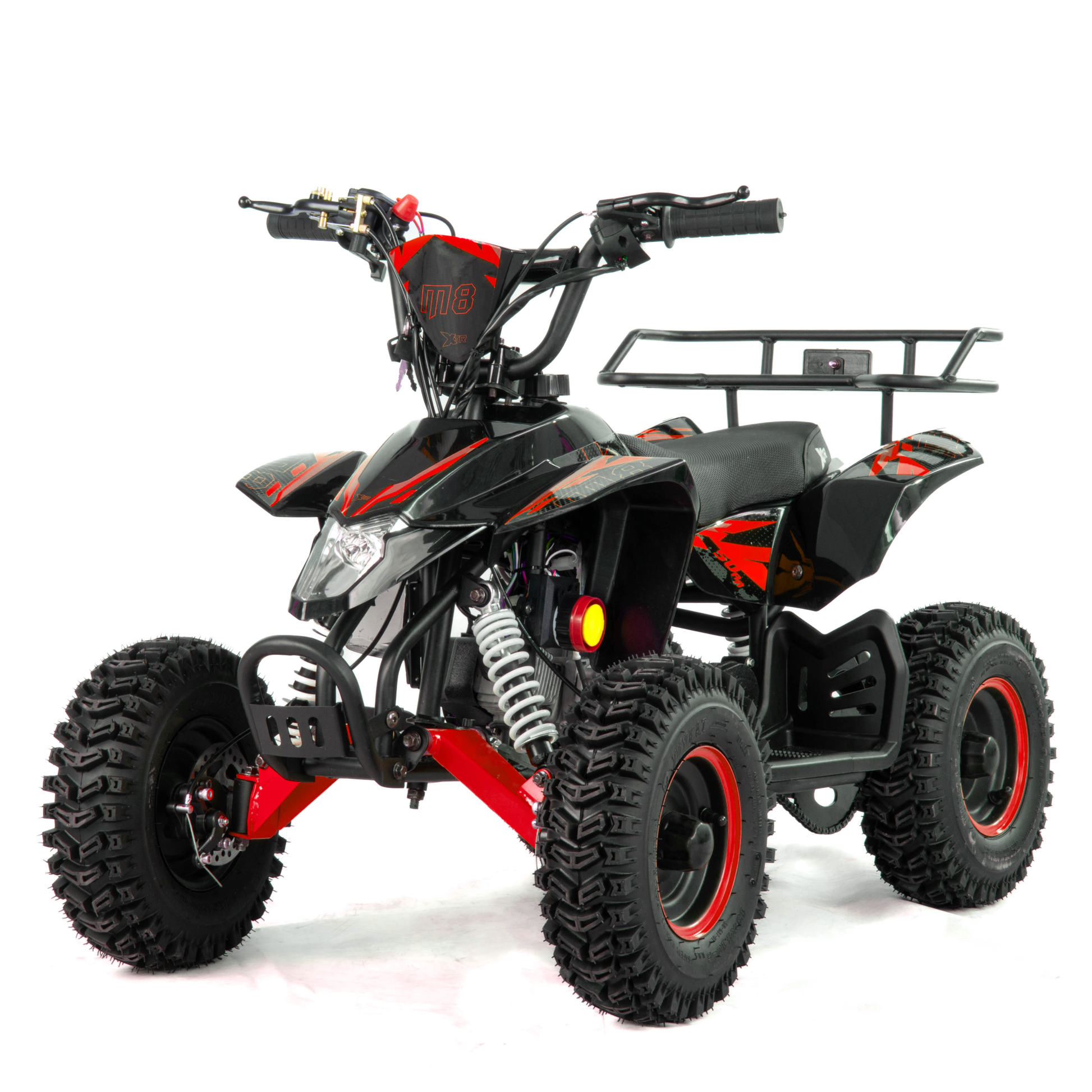 Mini quad XTR M8 to pojazd z dwusuwowym silnikiem jednocylindrowym o pojemności 50cm3. Zestawiony na 6-calowych kołach. Przeznaczony dla dzieci do 8 roku życia. Model o charakterystyce sportowej występuje w dwóch wersjach rozruchu: