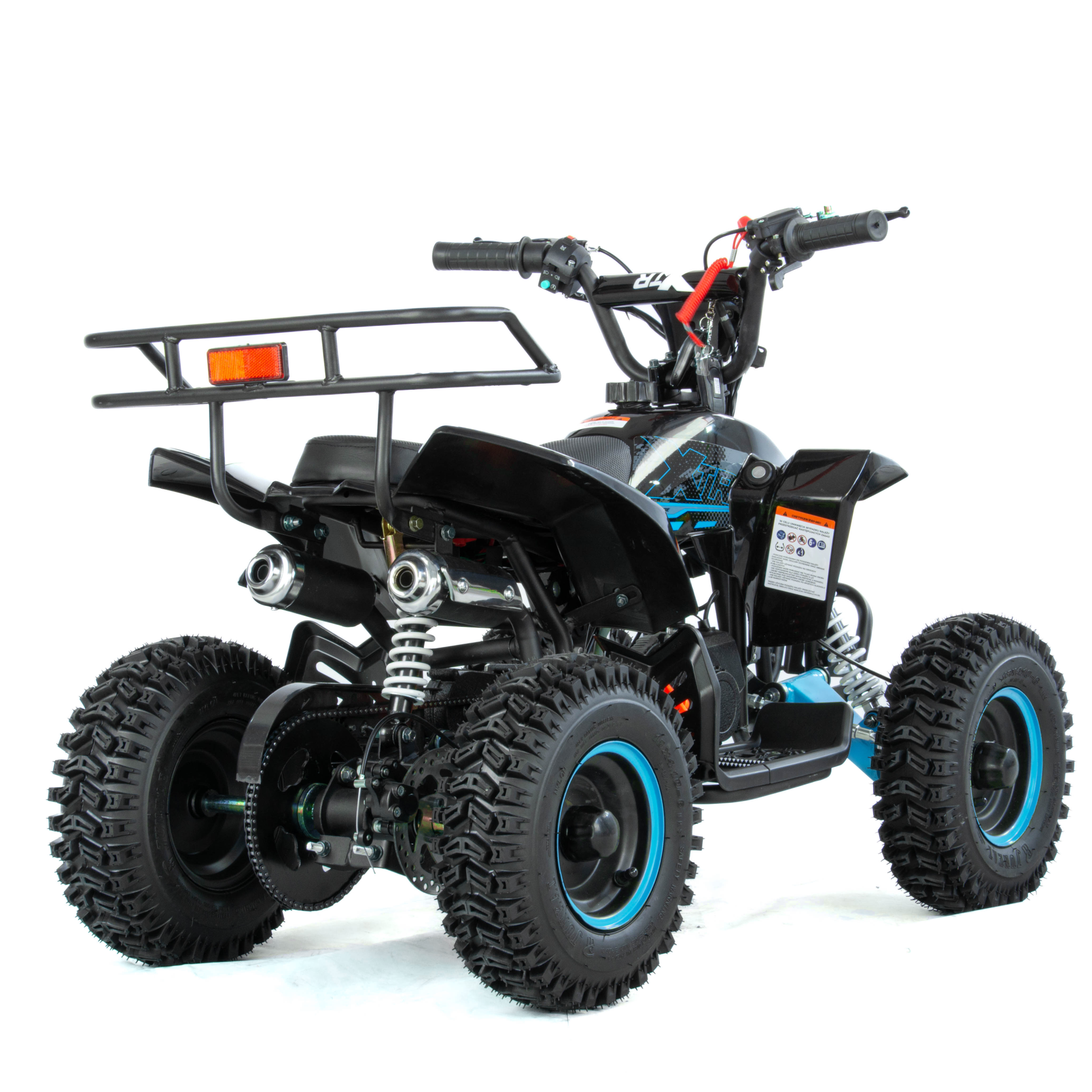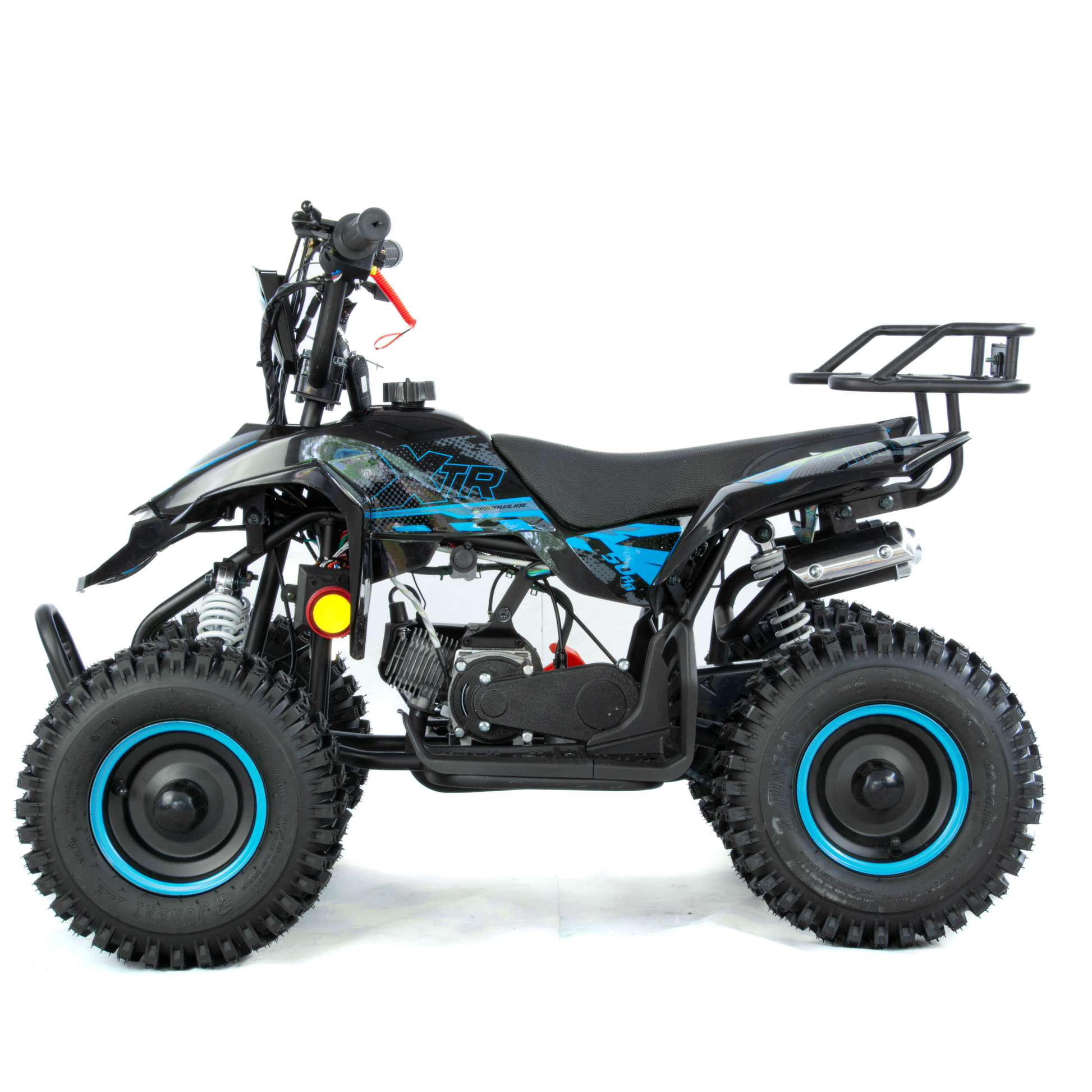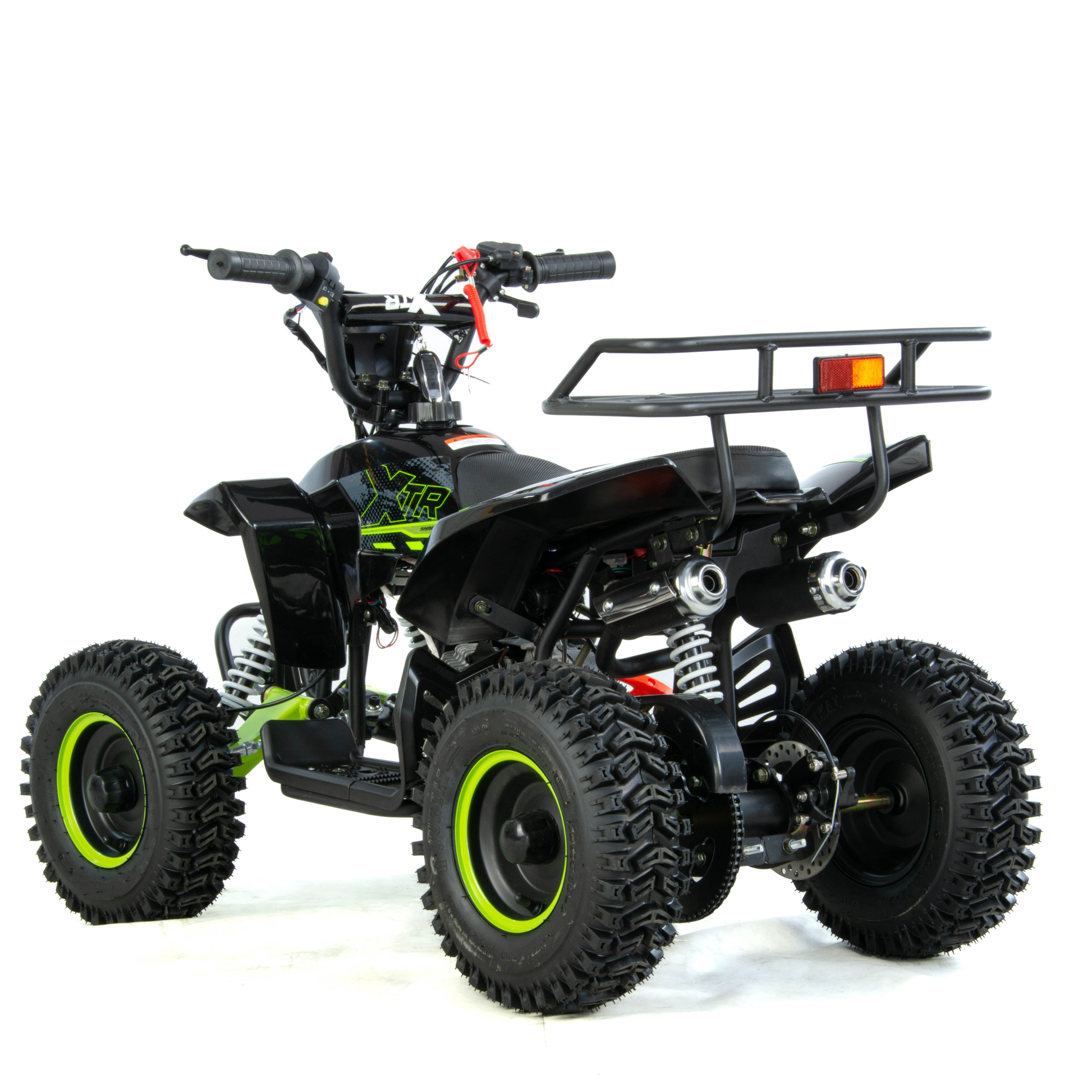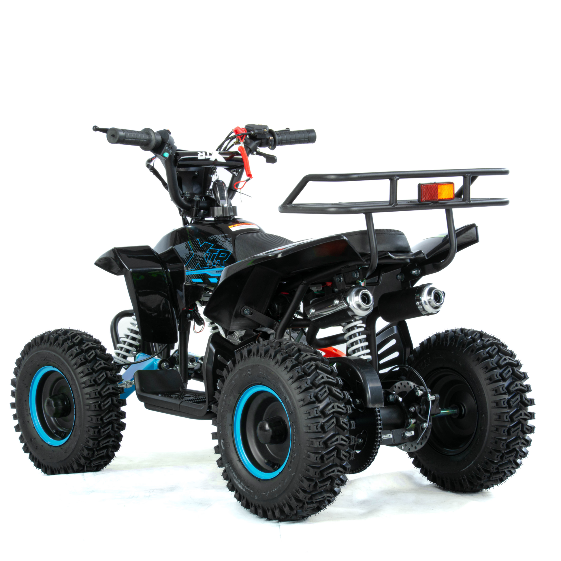 Mini quad XTR M8 to pojazd z dwusuwowym silnikiem jednocylindrowym o pojemności 50cm3. Zestawiony na 6-calowych kołach. Przeznaczony dla dzieci do 8 roku życia. Model o charakterystyce sportowej występuje w dwóch wersjach rozruchu:
