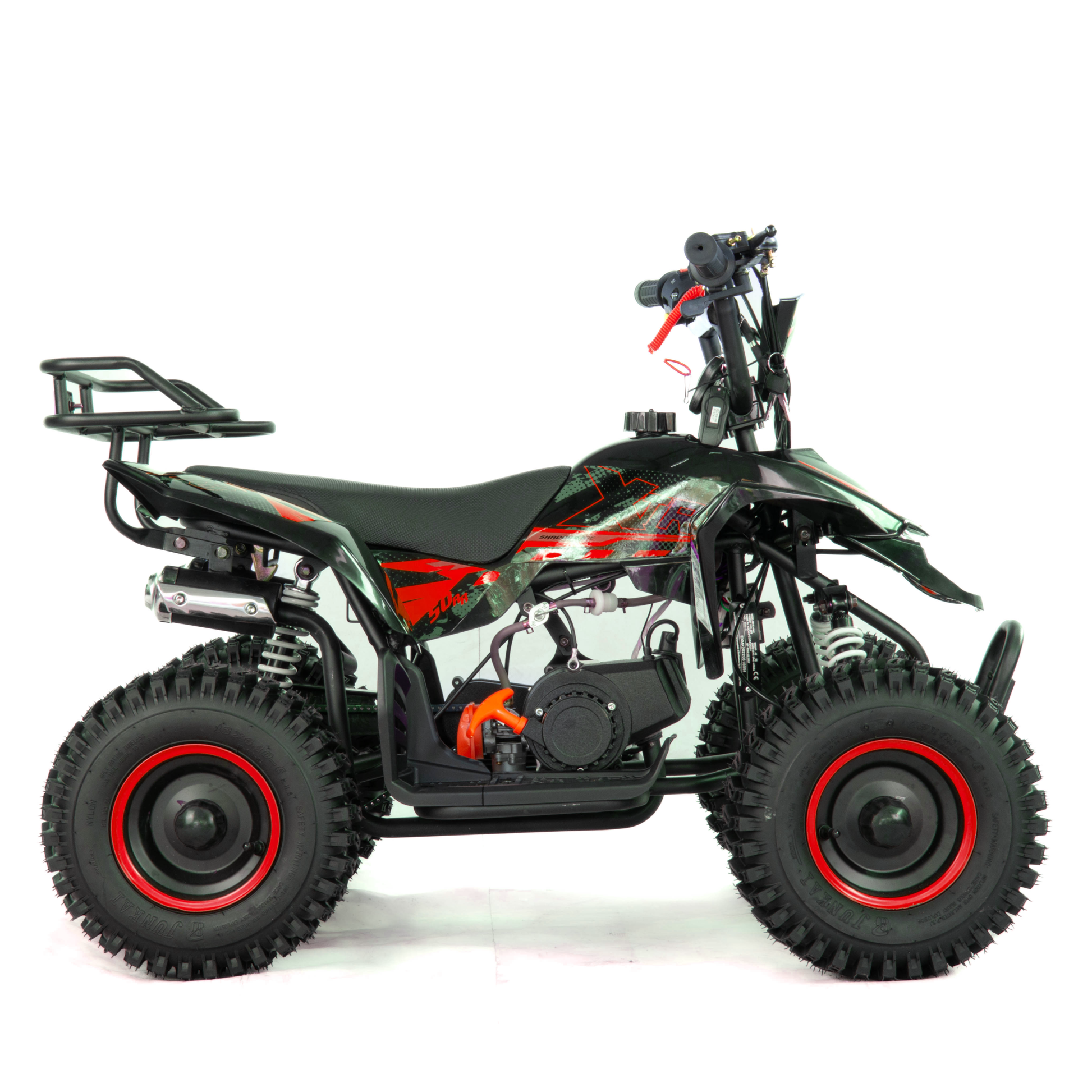 Quad zaopatrzony w 6-calowe felgi z pompowanymi oponami o terenowym bieżniku. Wysoki bieżnik kierunkowy zapewnia odpowiednią przyczepność na różnych nawierzchniach i jest odporny na ścieranie