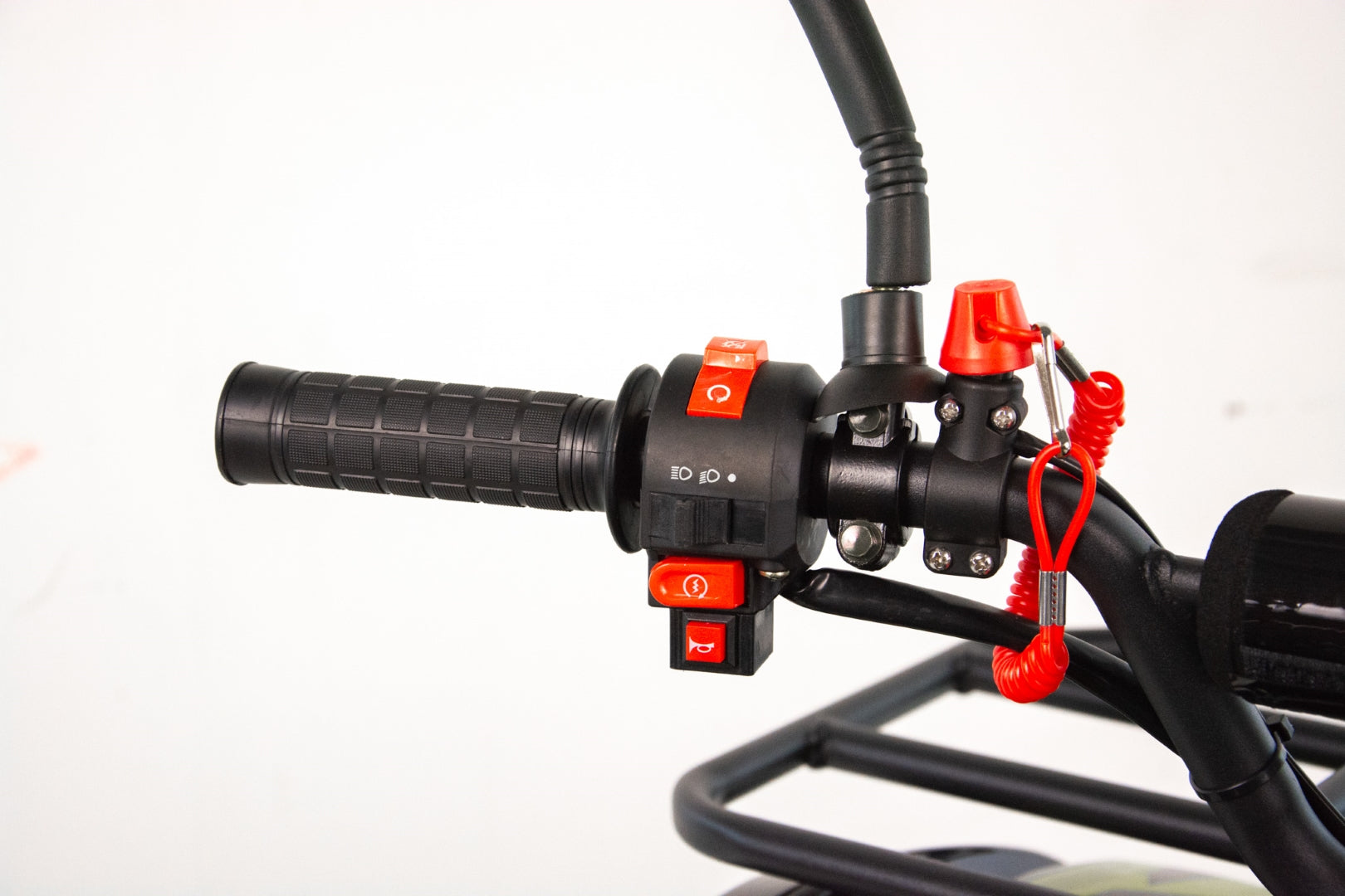 Dodatkowe elementy wyposażenia to między innymi: licznik analogowy, licznik motogodzin, lusterka, klakson oraz beadlocki na kołach, które poprawiają walory wizualne quada