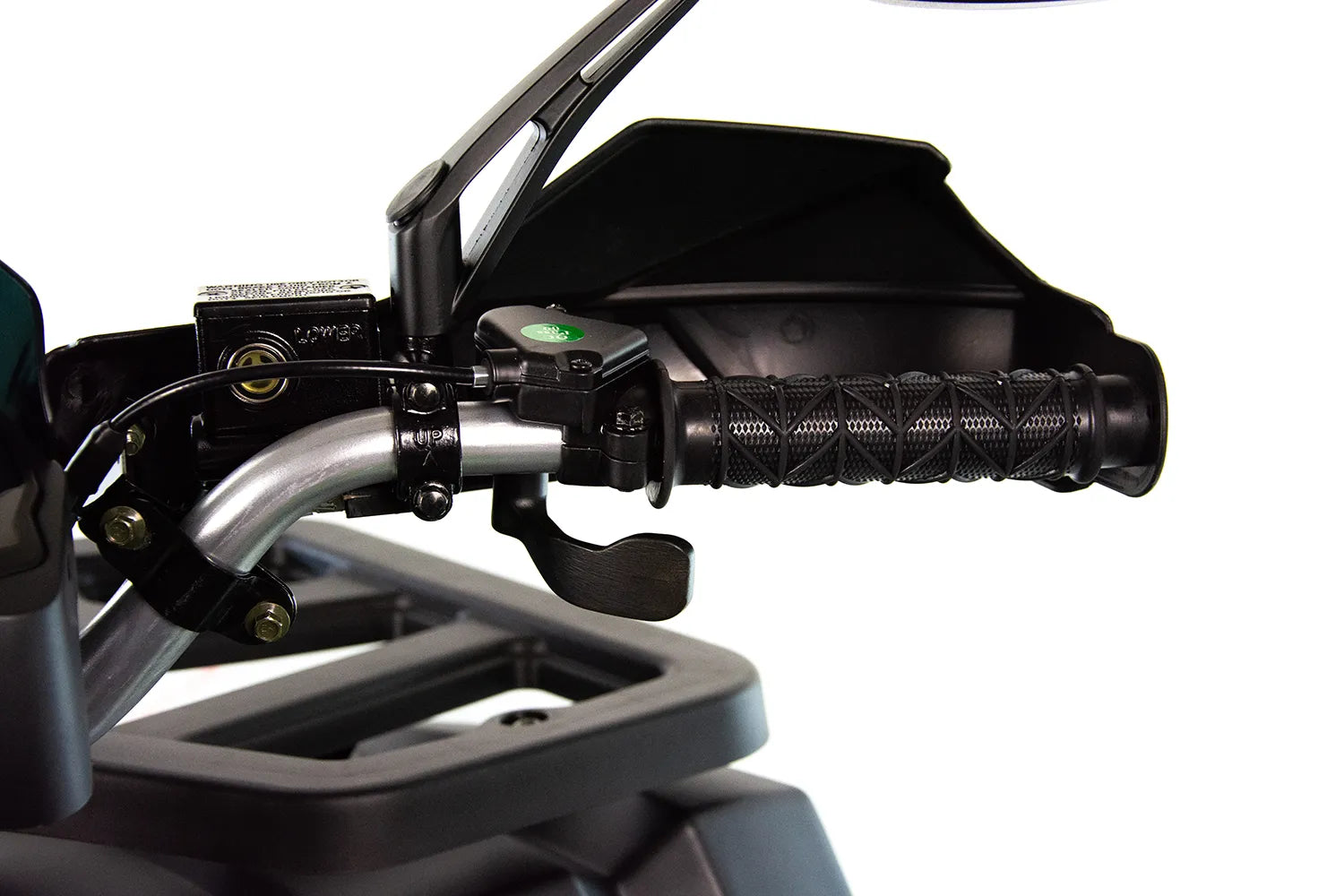 Zarówno z przodu jak i z tyłu mamy do dyspozycji hydrauliczne hamulce tarczowe, które w połączeniu z wydajną pompką hamulcową gwarantują idealną siłę hamowania. Klamka hamulca przedniego znajduje się na kierownicy natomiast tylny obsługiwany jest nożnie