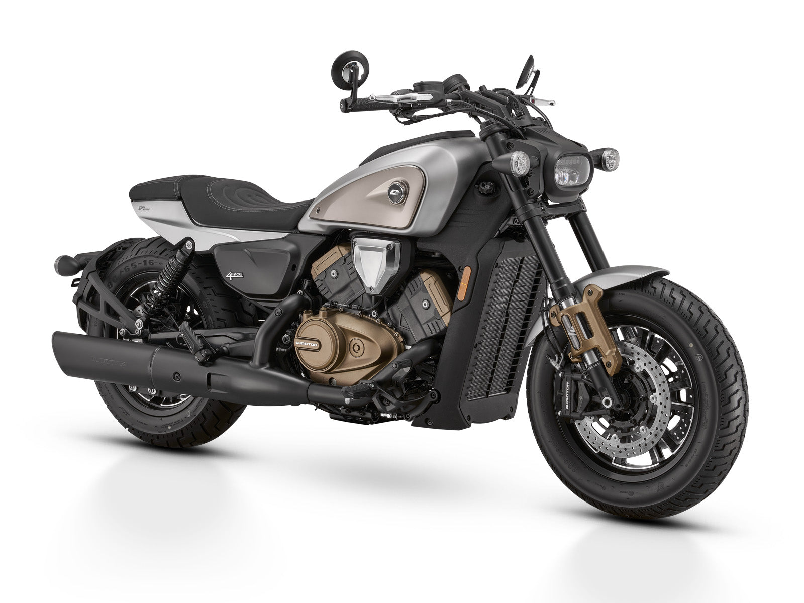 Autentyczny styl cruisera z kołami w stylu Bobber, dużym baku w kształcie kropli, płaskim przednim reflektorem LED, szerokimi, wygiętymi kierownicami z lusterkami na końcach oraz stylowym, pikowanym niskim siedzeniem nadają modelowi SRV 700 jego piękny i unikalny wygląd.