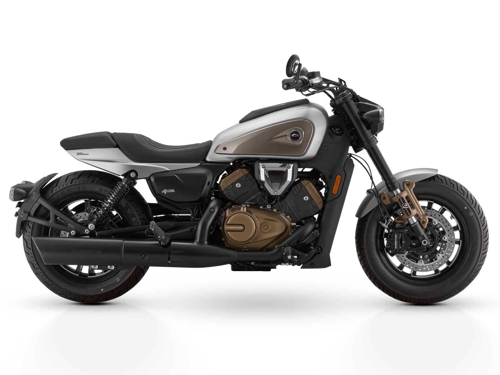 SRV 600V to autentyczny cruiser z silnikiem V4 z czterema rurami wydechowymi, kołami w stylu Bobber, dużym zbiornikiem w kształcie kropli, szeroką kierownicą i lusterkami w obciążnikach. Nawet tylne, nowoczesne światła LED w kierunkowskazach przywołują na myśl design nowoczesnych cruiserów. Jednak to co najbardziej Cię zaskoczy to jakość wykonania i ładne detale, które składają się na całość. Jest to piękną obróbką powierzchni odlewów pokryw silnika i wielu innych detali