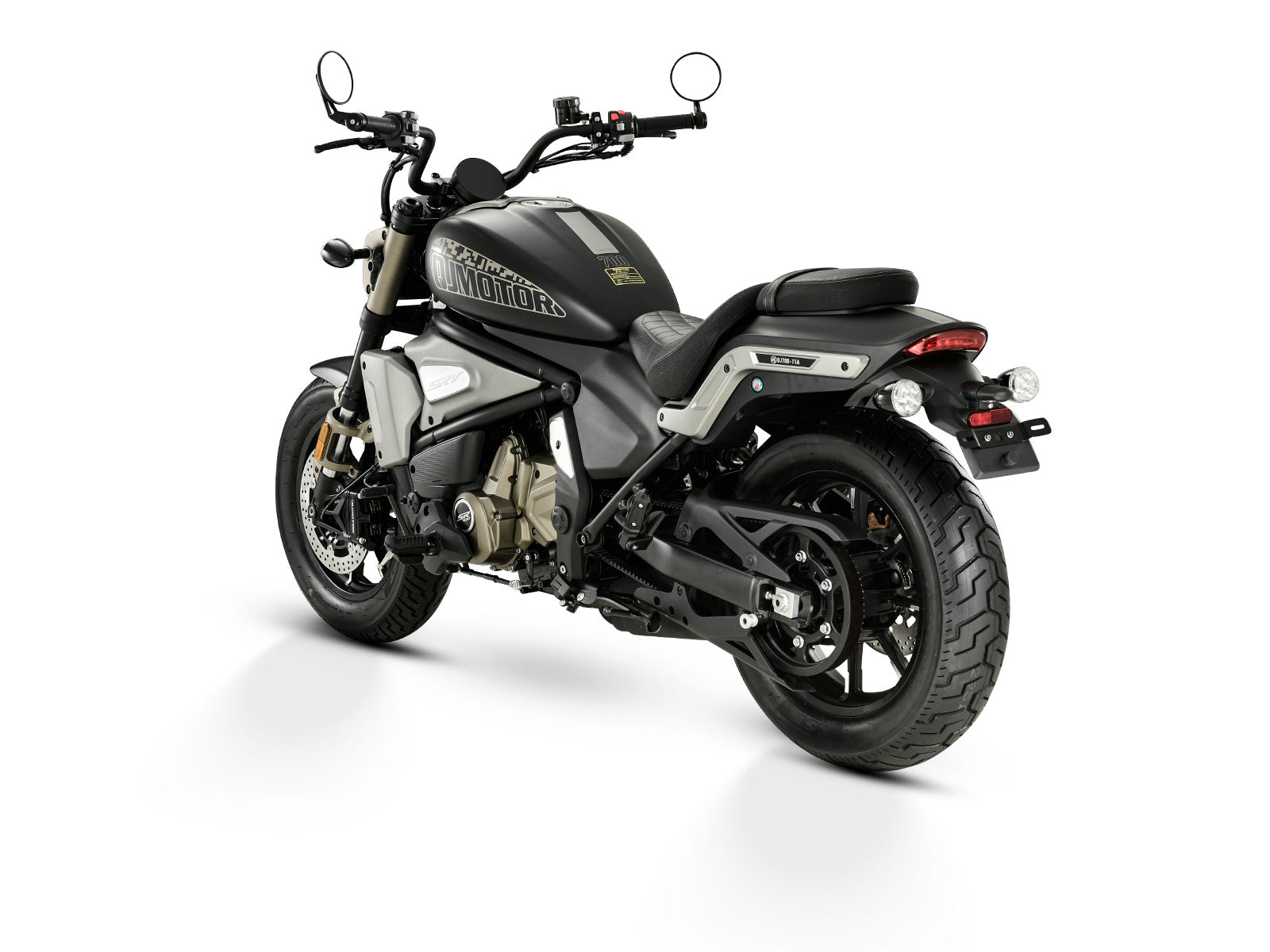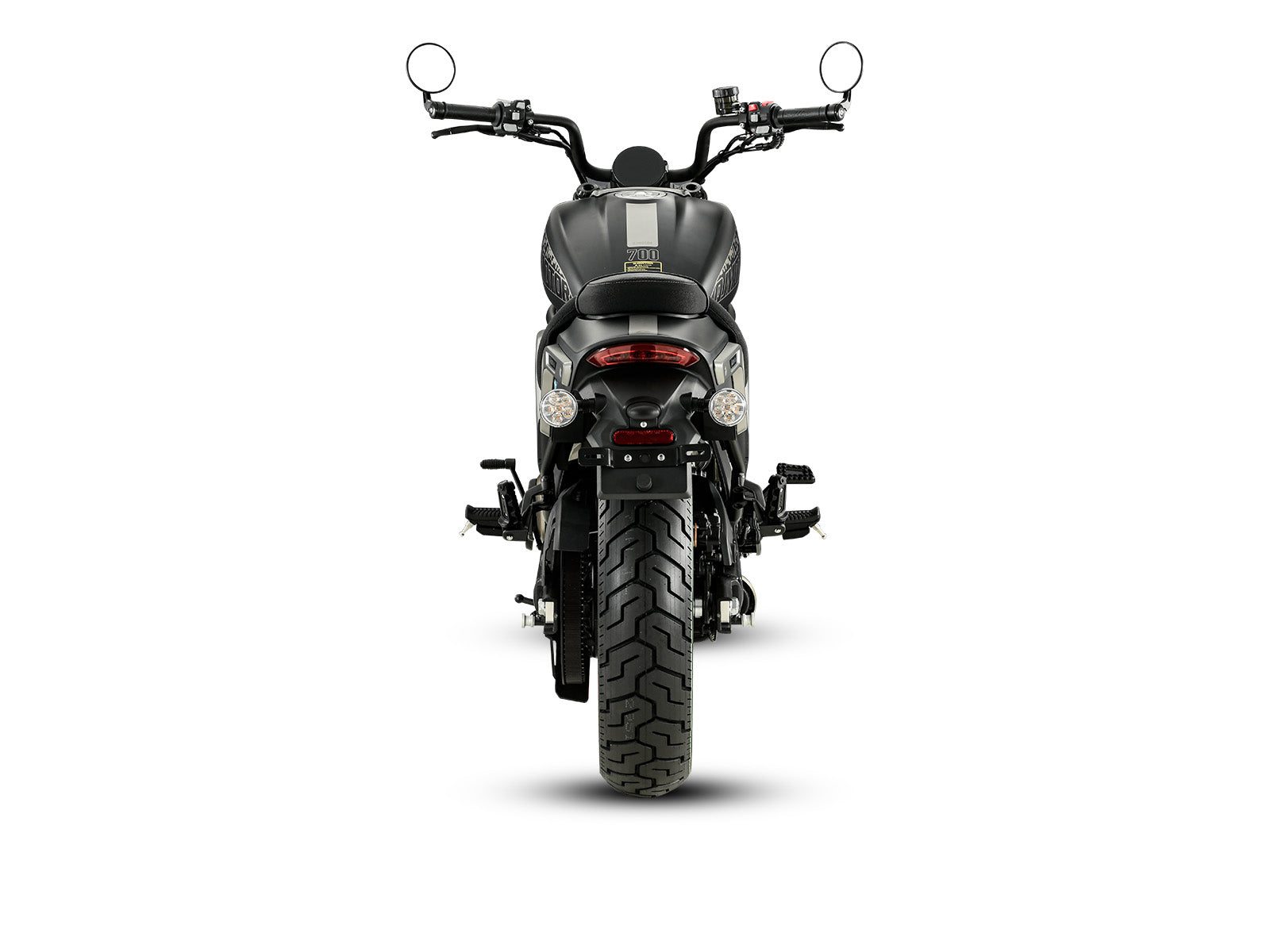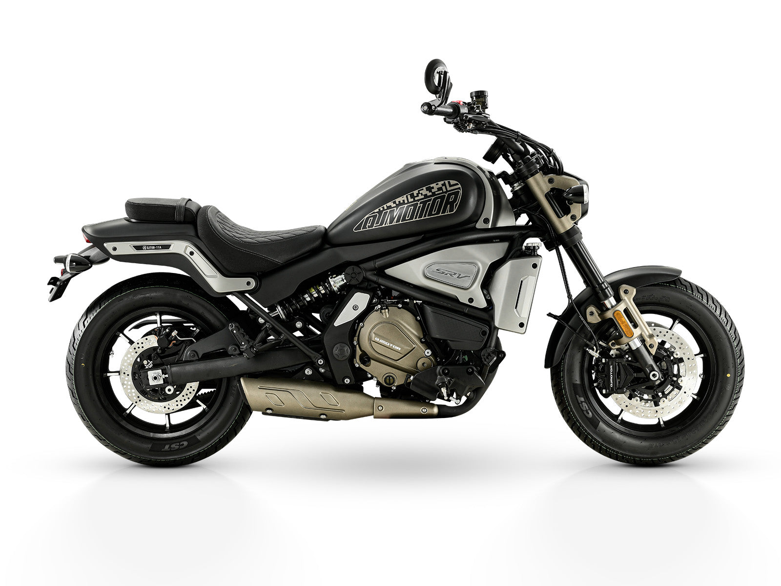 Autentyczny styl cruisera z kołami w stylu Bobber, dużym baku w kształcie kropli, płaskim przednim reflektorem LED, szerokimi, wygiętymi kierownicami z lusterkami na końcach oraz stylowym, pikowanym niskim siedzeniem nadają modelowi SRV 700 jego piękny i unikalny wygląd.