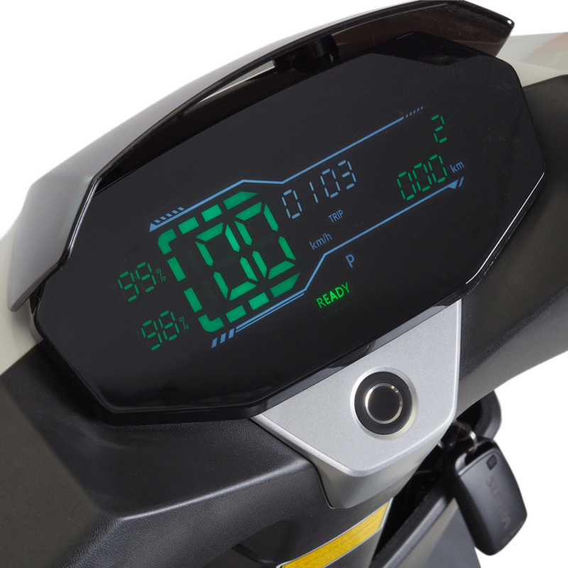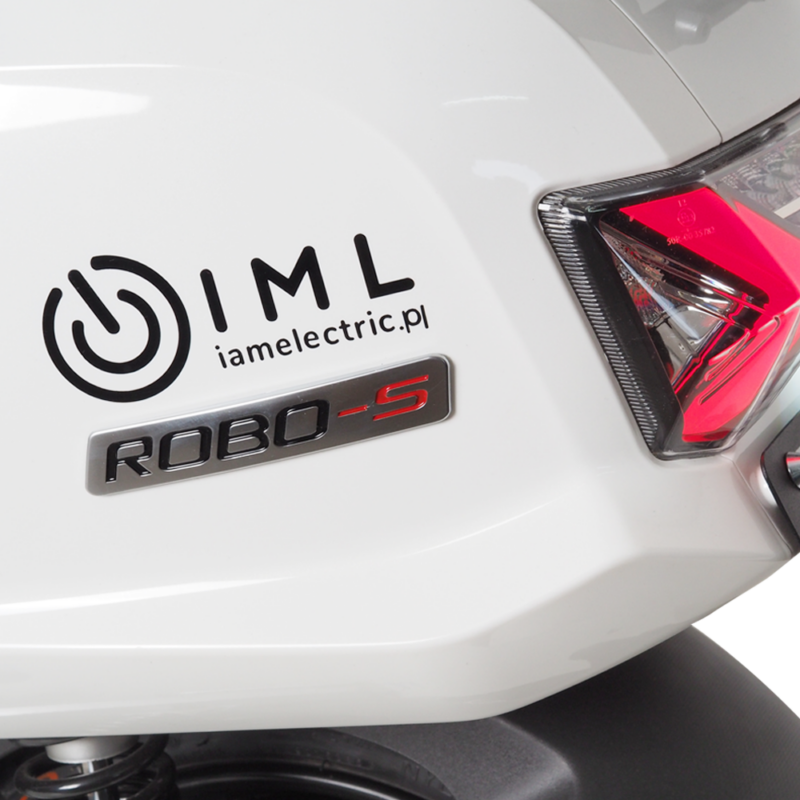 Skuter posiada cyfrowy wyświetlacz, który pokazuje poziom naładowania baterii, aktualną prędkość czy przebyte już kilometry. Na jego wyposażeniu znajdziemy ponadto alarm, trzy biegi, bieg wsteczny, kierunkowskazy, światła drogowe. Ciekawą sprawą może być fakt, że skuter posiada aplikację! Za pomocą aplikacji możesz również zablokować skuter, włączyć jego zapłon czy odblokować siedzenie. Robo-S to skuter na miarę XXI wieku!