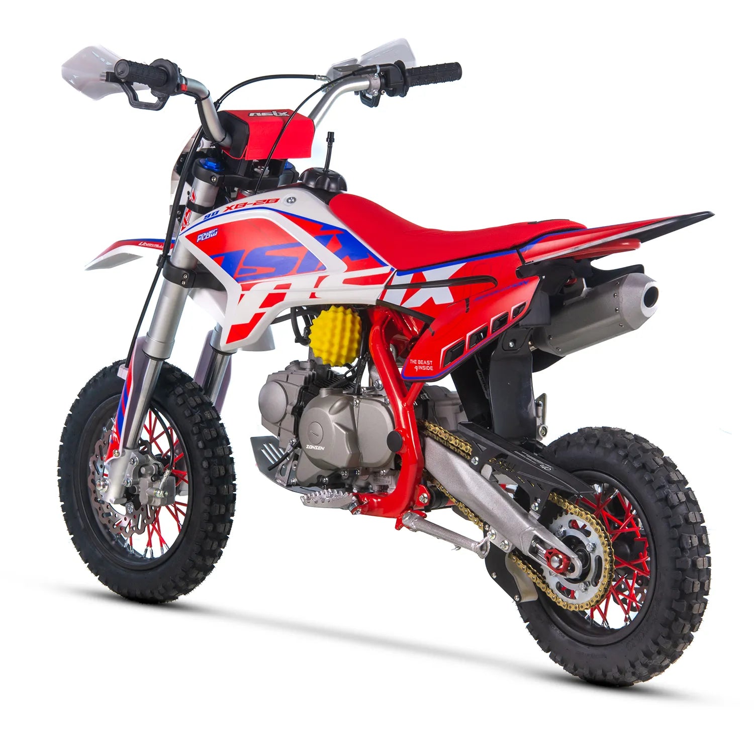 Modele ASIX XB28 dla najmłodszych napędza niezawodna, czterosuwowa jednostka ZONGSHEN. Dostępne są 3 konfiguracje pojemnościowe: 90cc, 110cc oraz 125cc. Każdy z nich zapewni niesamowite doznania z jazdy w terenie i nie zawiedzie Cię nawet w bardziej ekstremalnych warunkach