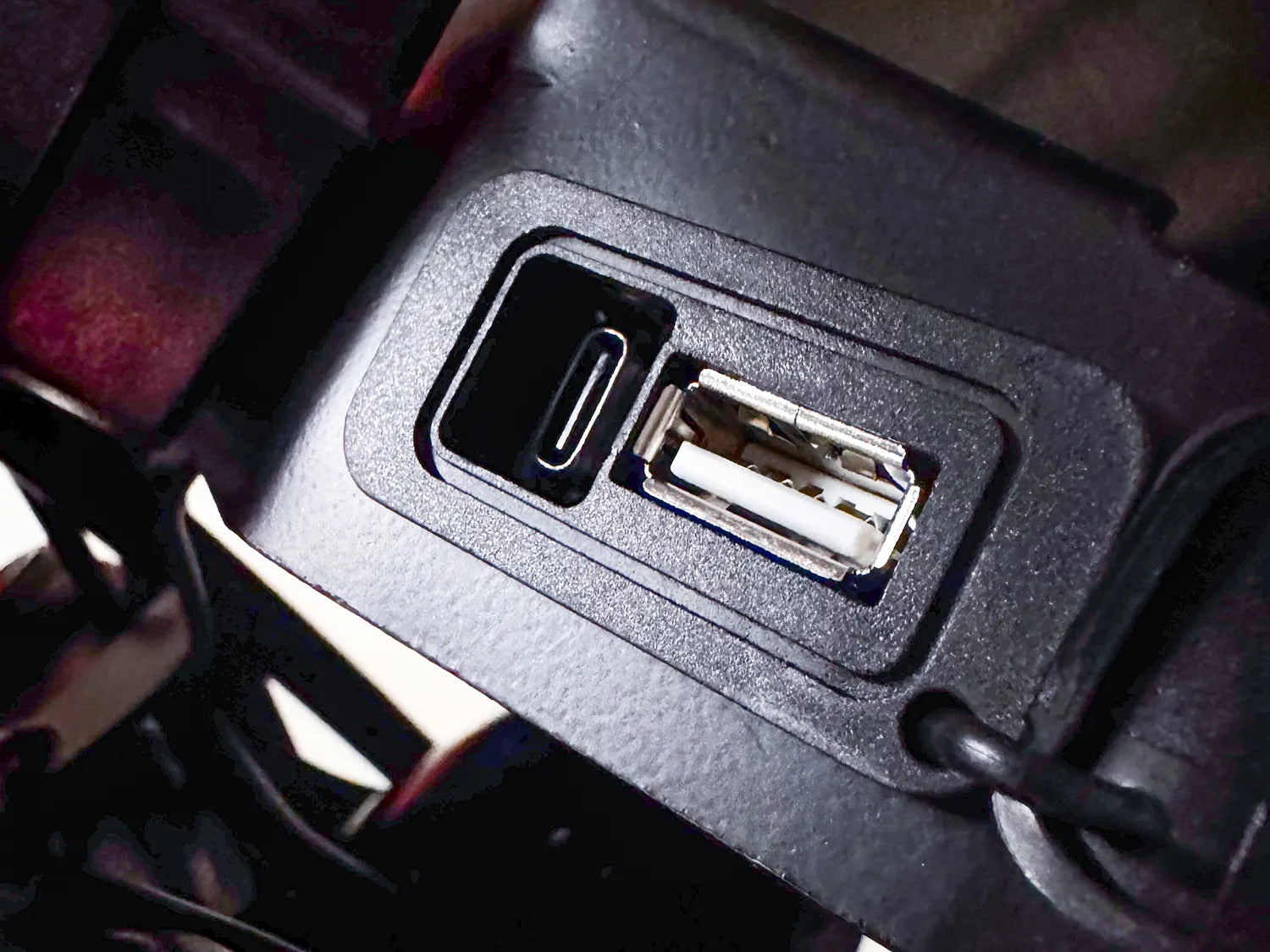 Pojazd wyposażony jest w złącza USB 1x Typ A 1x Typ C, co pozwala ładować swoją kamerkę czy telefon.