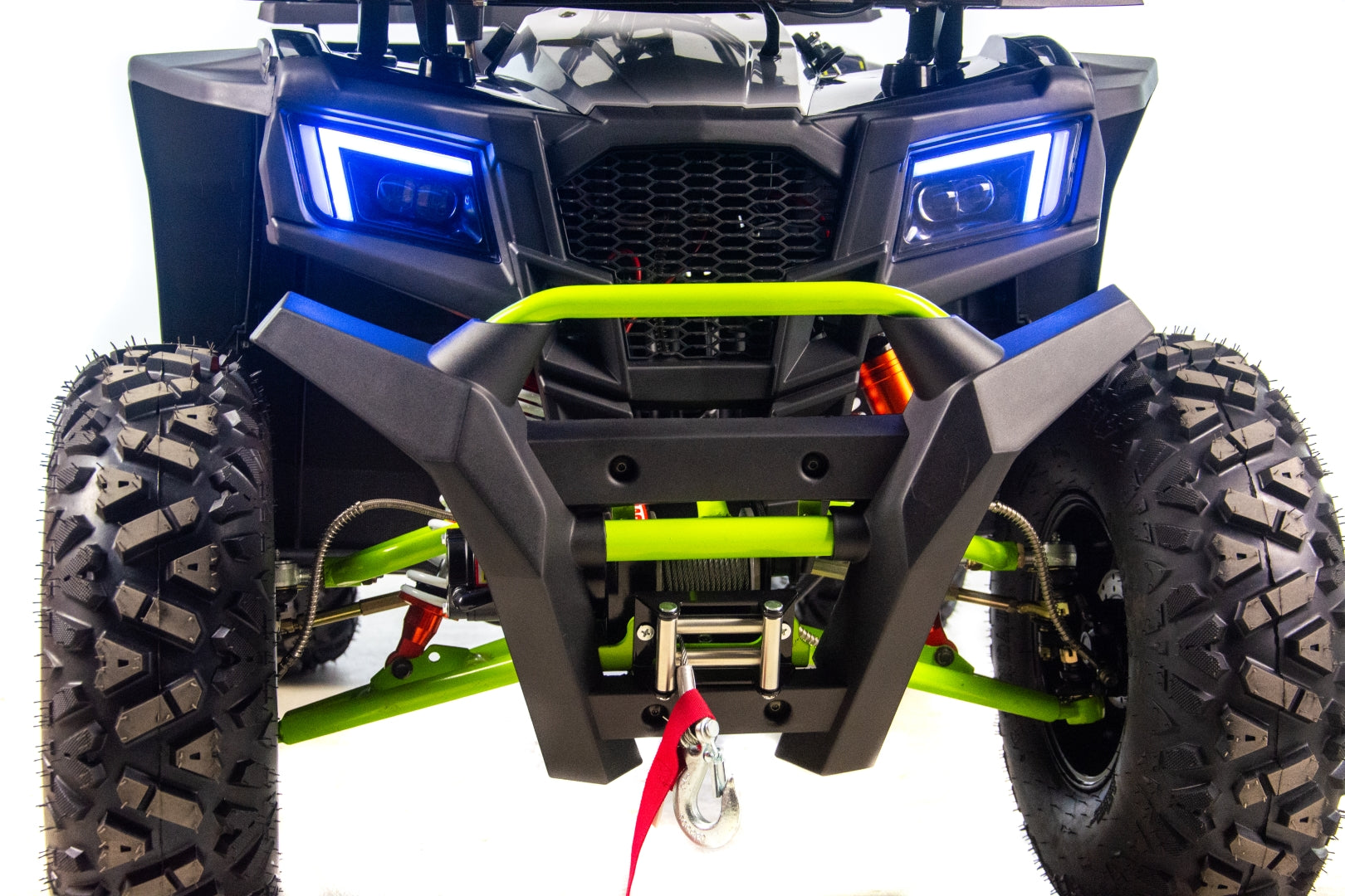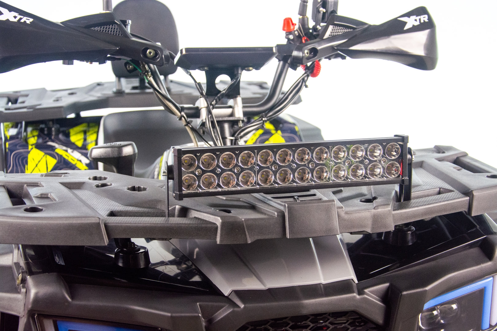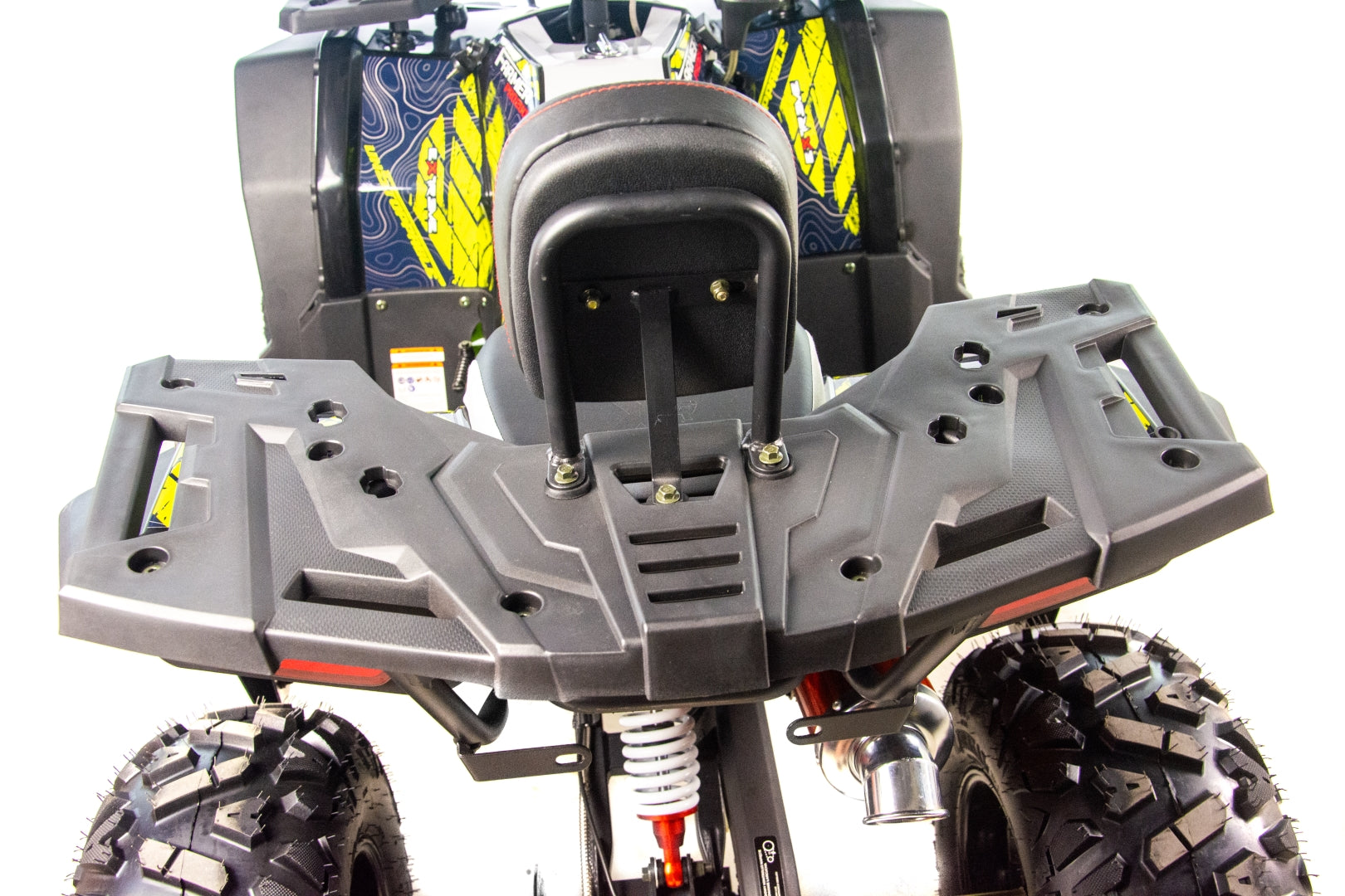 Quad wyposażony jest w dwa obszerne bagażniki z przodu i z tyłu pojazdu. Pozwolą one na zabranie wielu niezbędnych rzeczy do wyprawy w teren. Dedykowane nakładki plastikowe posiadają wiele punktów mocowań oraz dopełniają walorów wizualnych