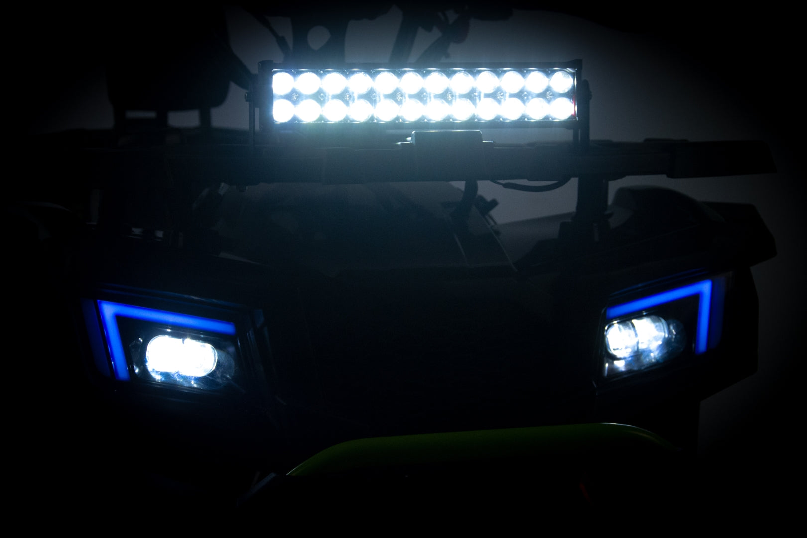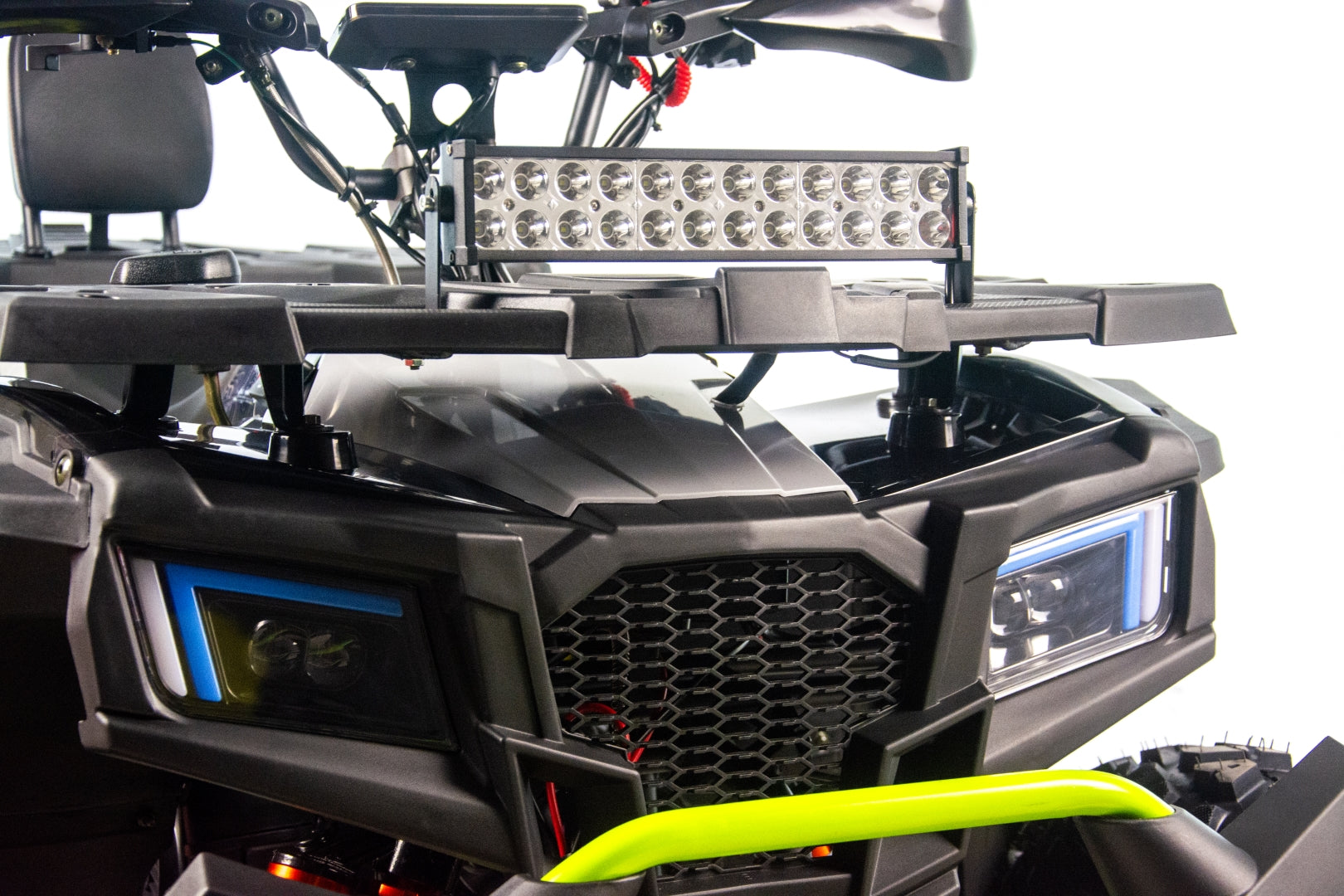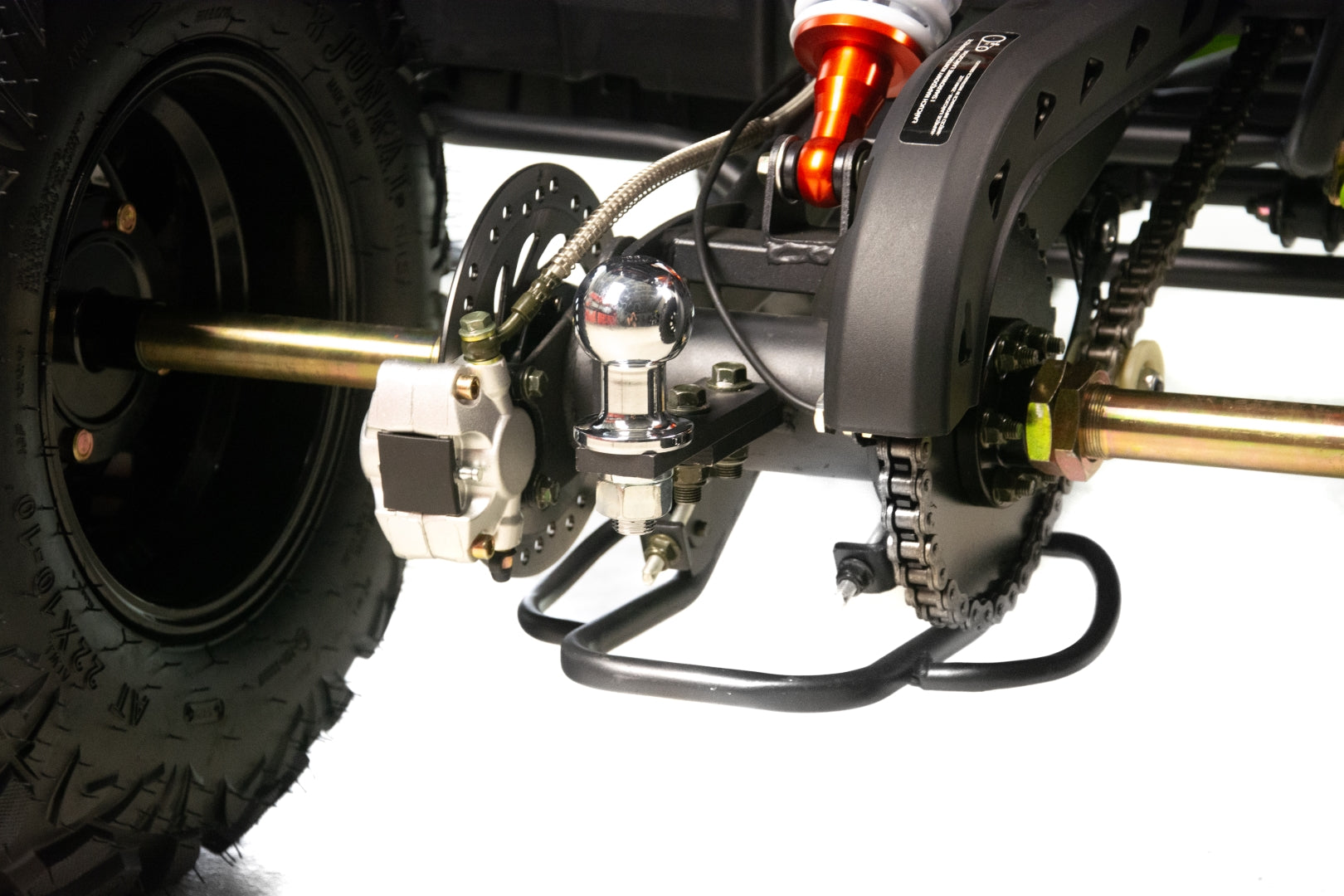 Quad wyposażony jest w dwa obszerne bagażniki z przodu i z tyłu pojazdu. Pozwolą one na zabranie wielu niezbędnych rzeczy do wyprawy w teren. Dedykowane nakładki plastikowe posiadają wiele punktów mocowań oraz dopełniają walorów wizualnych