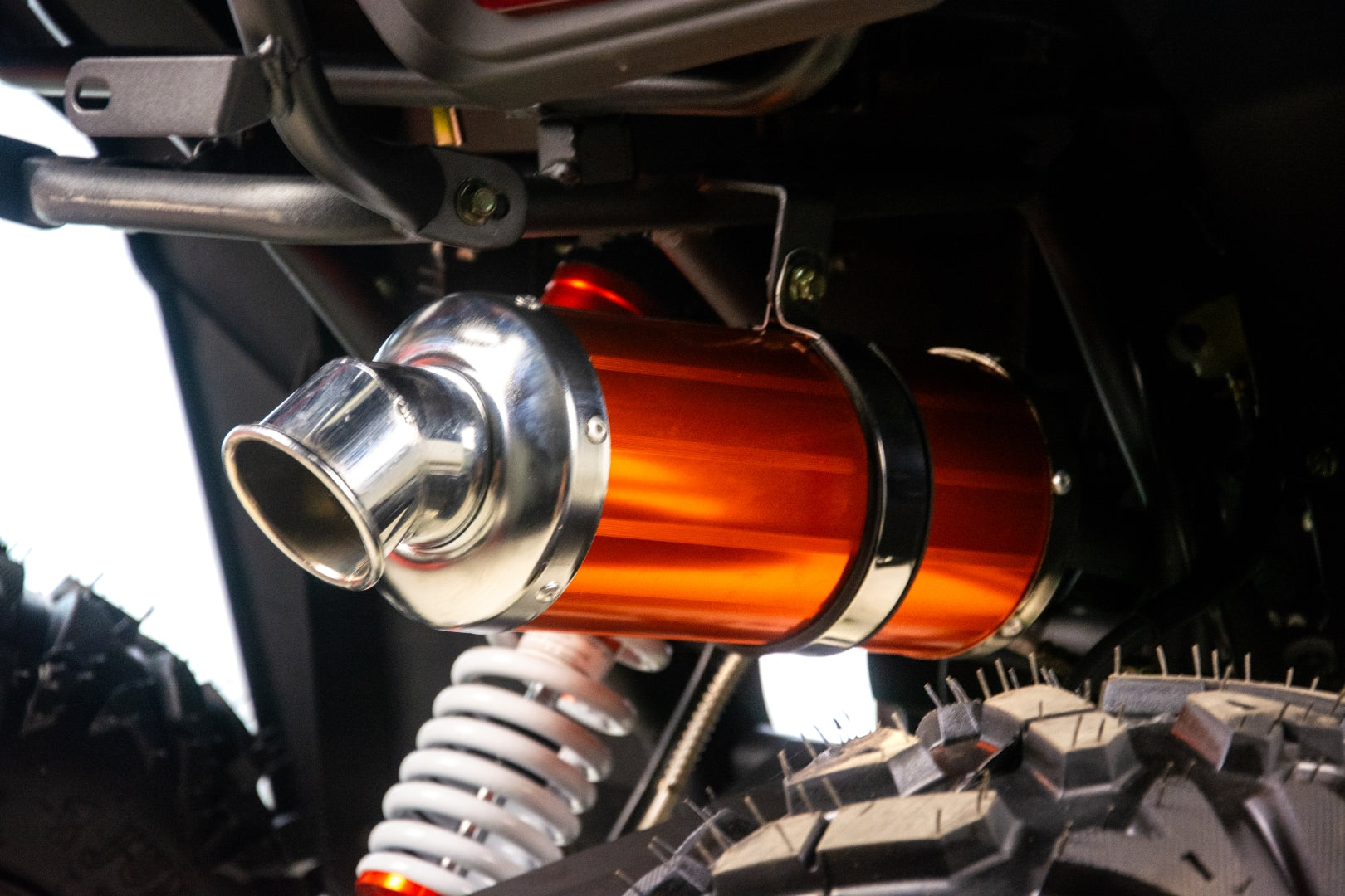 FARMER 250 zestawiony jest na dużych, 10-calowych kołach. Dzięki temu świetnie trzyma się drogi zarówno na twardej, asfaltowej nawierzchni oraz w trakcie przejazdu przez grząski teren