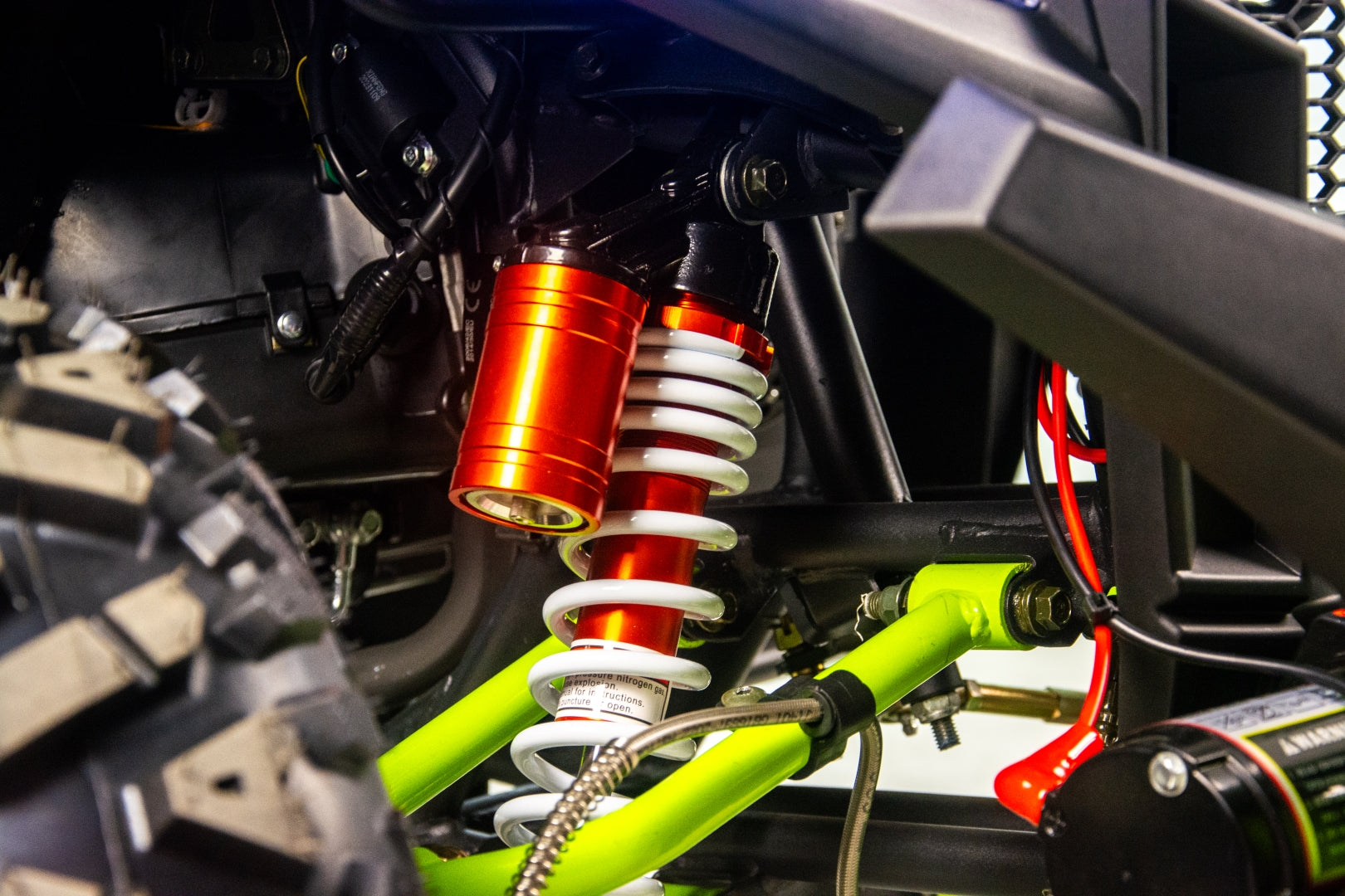 O odpowiednie tłumienie nierówności w tym modelu dbają amortyzatory gazowo-olejowe. Z przodu znajdują się dwa amortyzatory umieszczone na każdym z wahaczy, natomiast z tyłu jest jeden, centralnie umieszczony amortyzator